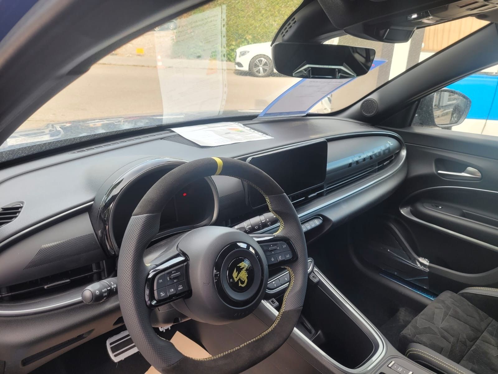 Airbag Fahrer-/Beifahrerseite, Ambiente-Beleuchtung, Außenspiegel elektr. verstellbar, beide, Außenspiegel schwarz lackiert, Außenspiegel und Türgriffe außen schwarz, Beifahrerairbag abschaltbar, Body-Kit, Bremssättel Acid Green, Einstiegsleisten (verchromt), Elektromotor 207 kW (cont. 105 kW), Fahrwerk tiefergelegt, Fensterheber elektr. vorn mit Komfortschaltung, Frontscheibe mit Wischerablagenheizung, Fußmatten, Gepäckraumboden höhenverstellbar, Heckleuchten LED, Heckscheibe heizbar, Heckspoiler, Induktionsladeschale für Smartphone (Wireless Charging), Infotainment-System: UConnect mit Navigationssystem (Touchscreen 10,25"), Innenspiegel mit Abblendautomatik, Instrumentenanzeige Farbdisplay, 7 Zoll, Karosserie: 4-türig, Klimaautomatik, Kopf-Airbag-System vorn, Kopfstütze hinten mitte, Kopfstützen hinten, Ladekabel mit Typ 2-Stecker (Mode 3), Lenkrad (Sport/Alcantara), Lenksäule (Lenkrad) höhenverstellbar, Metallic-Lackierung, Notrufsystem (eCall), One Pedal Drive (elektronisches Gaspedal), Parkbremse elektrisch, Pedale Aluminium, Radioempfang digital (DAB), Radstand Standard, Rückfahrkamera mit 360° Surround View, Rückfahrkamera Park View, Rücksitz geteilt / klappbar, Seitenairbag vorn, Seitenscheiben hinten und Heckscheibe abgedunkelt, Sitz vorn links verstellbar (6-fach), Sitz vorn rechts verstellbar (6-fach), Sitzheizung vorn, Smartphone kabellose Schnittstelle (Apple CarPlay & Android Auto), Sound-System mit 6 Lautsprecher, Sperrdifferential mechanisch, Stoßfänger in Sport-Design, Türgriffe innen verchromt, USB-Anschlüsse (Typ C und Typ A), Warnanlage für Sicherheitsgurte vorn und hinten