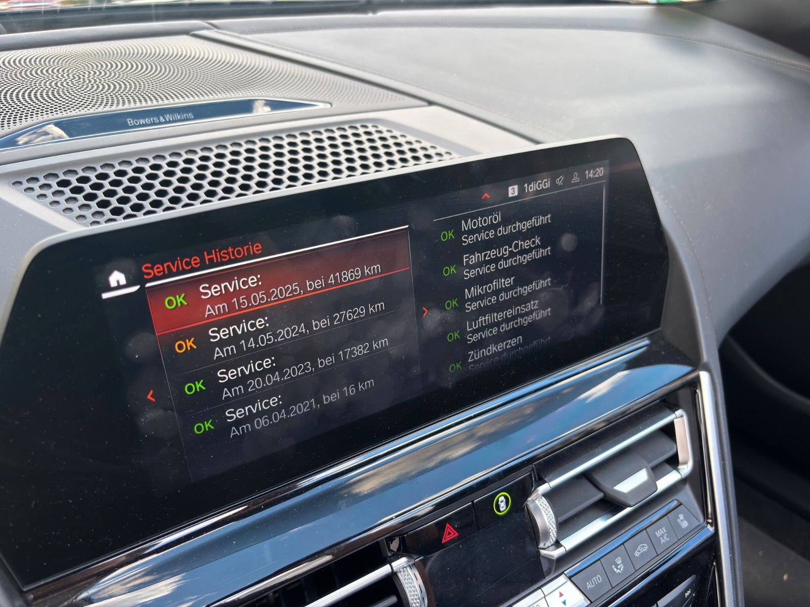 Aerodynamik-Paket M-Technic, Airbag Beifahrerseite abschaltbar, Airbag Fahrer-/Beifahrerseite, Aktive Kopfstützen, Aktive Motorhaube, Ambiente-Beleuchtung, Ausstattungs-Paket: Connected Professional, Ausstattungs-Paket: ConnectedDrive Services, Außenausstattung: Shadow-Line Hochglanz, Außenspiegel-Paket, Außenspiegel-Paket (erweitert), BMW Display-Key, BMW Live Cockpit Professional, Bremsanlage: M Sportbremsen (Bremssättel lackiert), Bremsassistent, DAB-Tuner (Radioempfang digital), Dachhimmel Anthrazit (BMW Individual), Diebstahlsicherung für Räder (Felgenschlösser), Durchladeeinrichtung (Mittelarmlehne hinten), Dynamische Bremsleuchte, Dynamische Dämpfer Control (Dynamic Damping Control), Dynamische Tractions Control (DTC), Erste Hilfe-Kasten / Verbandkasten, Exterieurumfänge Ceriumgrau, Fahrassistenz-System: Aufmerksamkeits-Assistent, Fahrassistenz-System: BMW Gestiksteuerung, Fahrassistenz-System: Driving Assistant, Fahrassistenz-System: Fahrerlebnisschalter, Freisprecheinrichtung Bluetooth mit erweiterte Smartphone-Anbindung, Fußmatten Velours, Getränkehalter, Heckklappenbetätigung automatisch, Heckleuchten LED, Heckspoiler (M-Technic), HiFi-Lautsprechersystem, Induktionsladeschale für Smartphone (Wireless Charging), Innenausstattung: Erweiterte Lederausstattung BMW Individual Leder Merino (Schwarz), Innenausstattung: Interieurleisten Edelstahlgewebe, Innenspiegel rahmenlos, Instrumententafel lederbezogen, Isofix-Aufnahmen für Kindersitz an Rücksitz, Karosserie: 2-türig, Klimaautomatik 2-Zonen mit autom. Umluft-Control, Knieairbag Beifahrerseite, Knieairbag Fahrerseite, Kopf-Airbag-System hinten, Kopf-Airbag-System vorn, LM-Felgen, M Multifunktionssitze vorn, M Technik-Paket, Motor 4,4 Ltr. - 390 kW V8 32V, Otto-Partikelfilter (OPF), Park-Distance-Control (PDC) vorn und hinten, Parkassistent-Paket, Parkbremse elektrisch, Personalisierungssystem (Personal Profile), Reifendruck-Kontrollsystem, Rücksitzlehne geteilt/klappbar, Schadstoffarm nach Abgasnorm Euro 6d, Scheibenwaschdüsen heizbar, Seitenairbag vorn, Service-System: Gesetzlicher Notruf, Service-System: Intelligenter Notruf inkl. TeleServices, Service-System: On-Street Parking, Sitzausstattung: 4-Sitzer, Sitzbezug / Polsterung: Leder Merino (erweiterter Umfang), Sitzbezug / Polsterung: Leder Vernasca, Sitzheizung vorn, Soft-Close-Automatik für Türen, Sport-Auspuffanlage, Sport-Fahrwerk (mit adaptivem Dämpfersystem), Sportdifferential, Start/Stop-Anlage (Funktion), Verdeck schwarz, Verdeckbetätigung vollautomatisch, Warndreieck, Wärmeschutzverglasung getönt, Überschlag-Schutzsystem (aktiver Überrollbügel)
