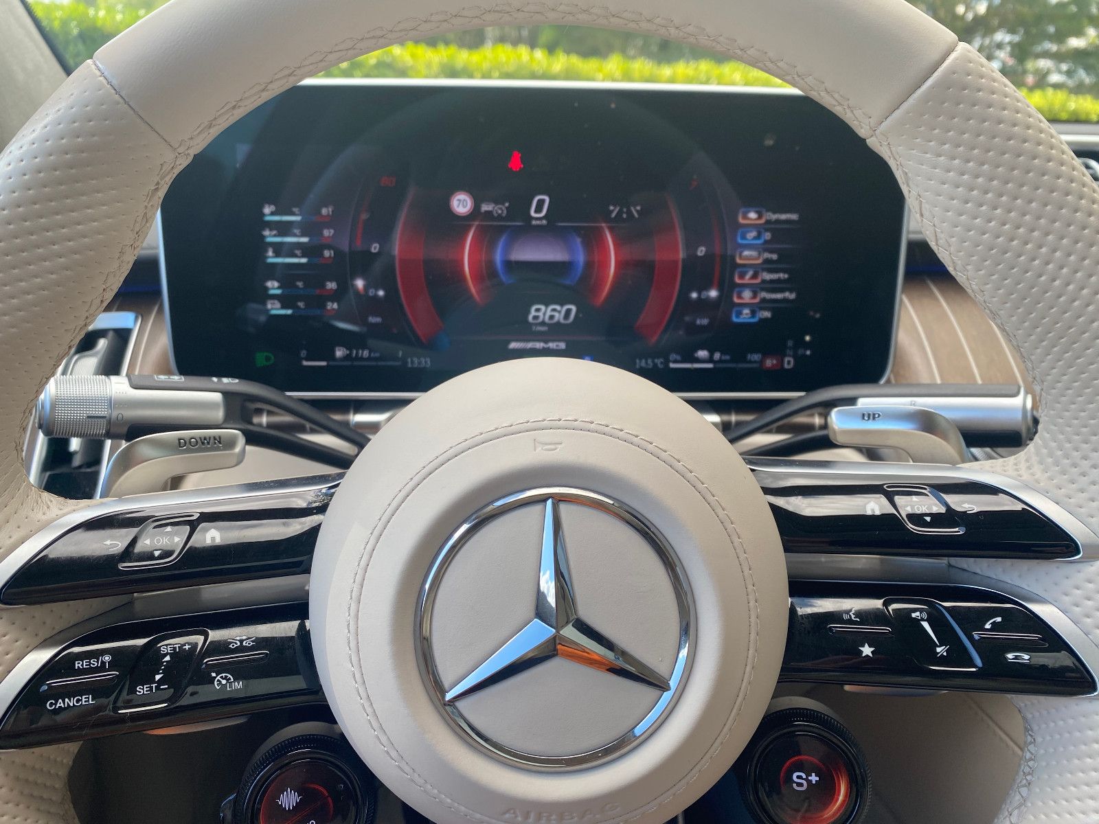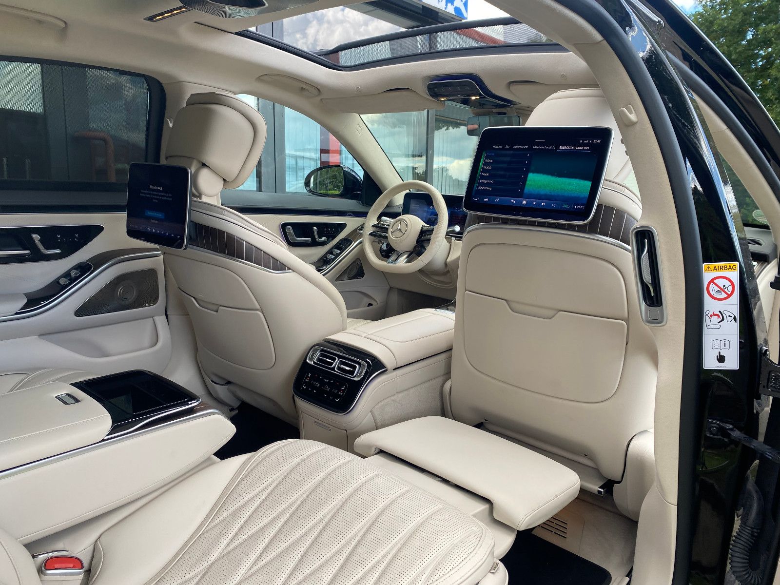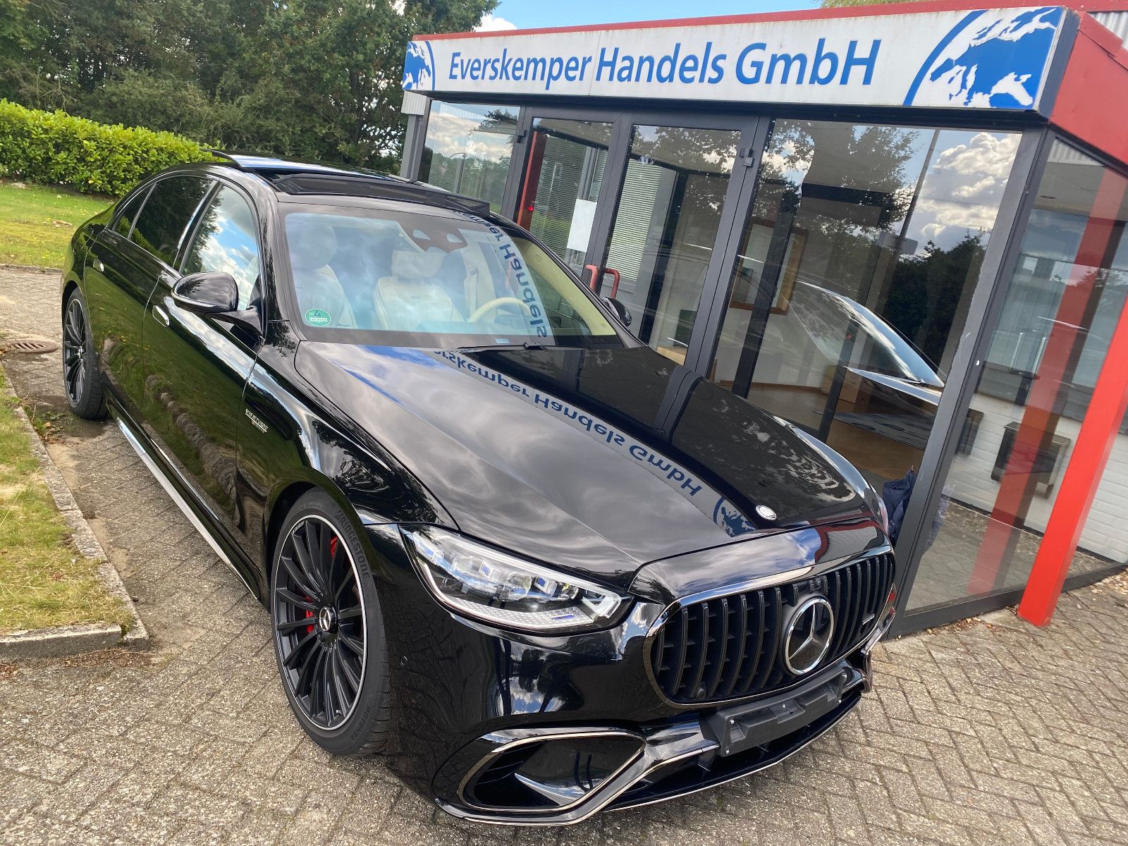 Adaptive Scheibenwischeranlage (Magic Vision Control) beheizt, Airbag im Fond, Ambiente-Beleuchtung, Aktive, AMG Kühlergrill abgedunkelt, Ascher anstelle Ablagefach, Ausstattungs-Paket USB Plus, Ausstattungs-Paket: Energizing Fond, Ausstattungs-Paket: Energizing vorn, Auto-Telefonie (Telefonmodul Bluetooth), Bremssättel Rot lackiert, Chauffeur-Paket, Designgurtschlösser, Diebstahlschutz-Paket Plus, Executive-Sitze, Exklusiv-Paket, Gurtbringer im Fond, Heckdeckel - Zusatzsicherung, Induktionsladeschale für Smartphone im Fond, Innenausstattung: designo-manufaktur Walnussholz Aluminium-Lines, Innenbeleuchtung hinten: Adaptive Innenraumleuchte, Innenhimmel designo Dinamica, Kopfhörer 2 Stück (ohne Kabel), Kühlbox Mittelarmlehne hinten, LM-Felgen vorn/hinten: 9,5x21 / 10,5x21 (Schmiederad, Vielspeichen, mattschwarz), Luftreinigungs-Paket, Multimediasystem MBUX (Fond Tablet), Multimediasystem MBUX High-End (Entertainment im Fond), Night-Paket (AMG), Panorama-Schiebedach, Park-Paket Remote, Seitenairbag (Sidebag) hinten, Service-System: MBUX Augmented Reality Head-up-Display, Service-System: MBUX Interieur-Assistent (Gestensteuerung berührungslos im Fond), Service-System: MBUX Interieur-Assistent (Gestensteuerung berührungslos), Sitze hinten Wadenmassage im Fond, Sonnenschutz-Paket, Sound-System mit Soundpersonalisierung, Sport-Fahrwerk (AMG Ride Control +), TV-Tuner, Vorrüstung für Intelligent Park Pilot