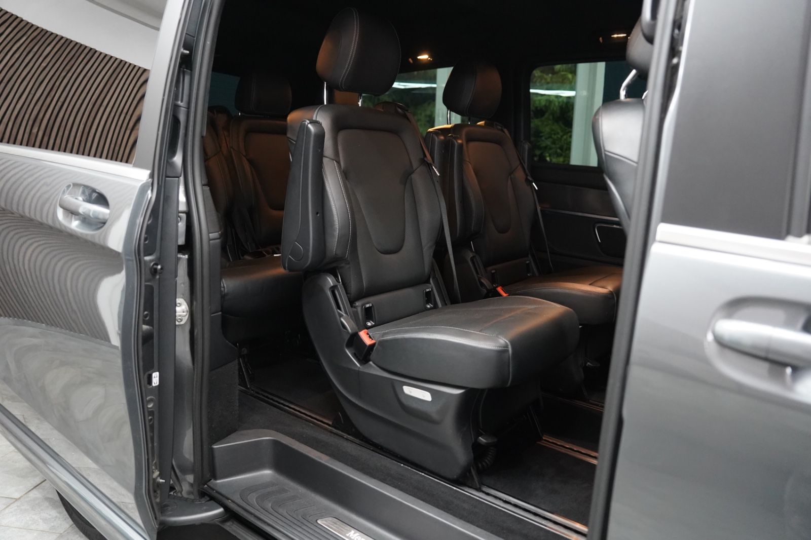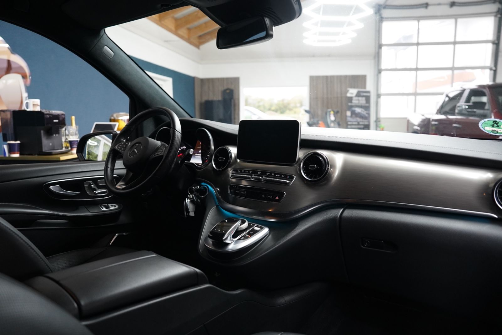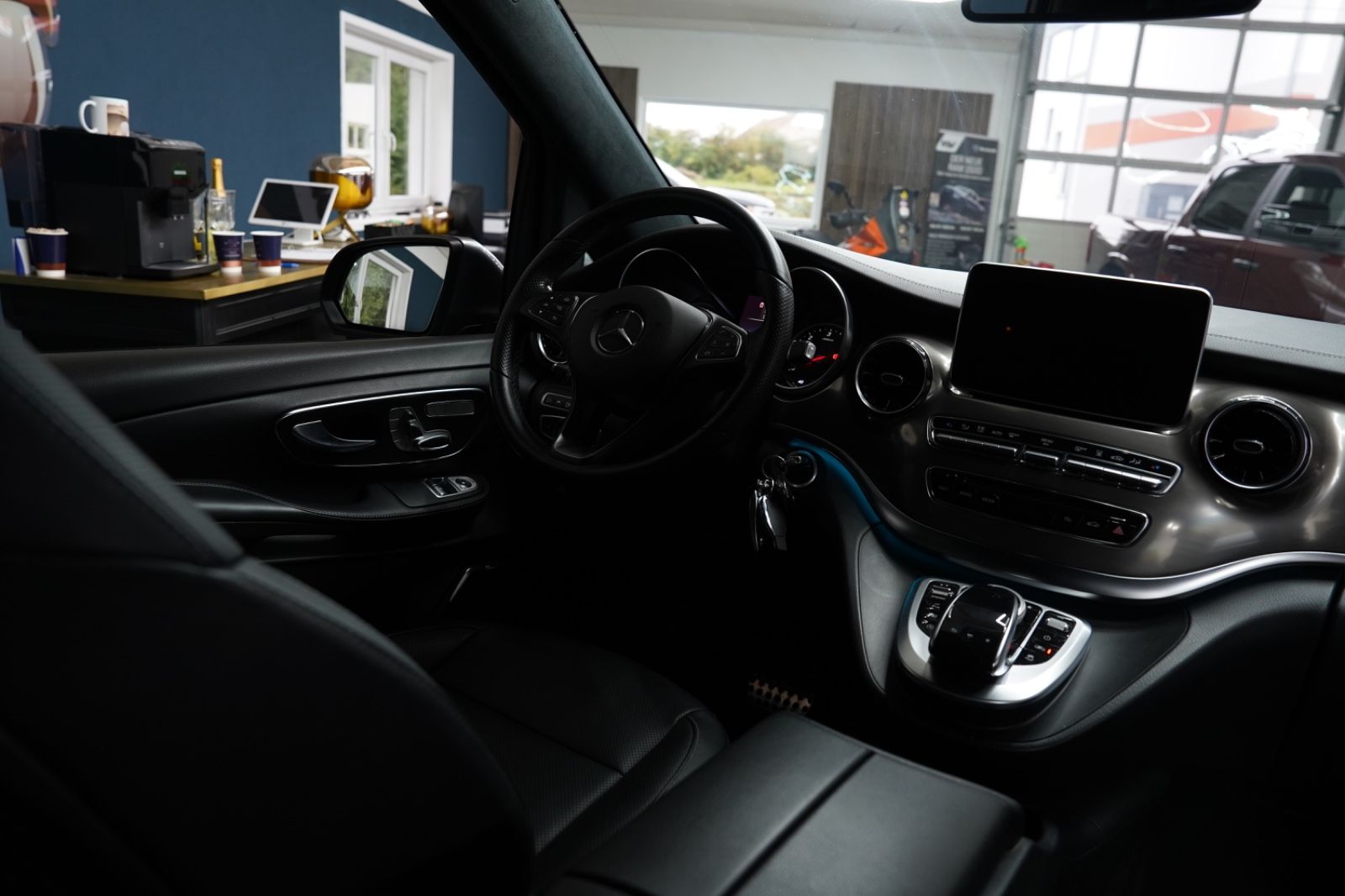Ablagenetz an Vordersitzlehne links, Adaptives Bremslicht, Airbag Beifahrerseite, Airbag Fahrerseite, Aktiver Abstands-Assistent Distronic, Ambiente-Beleuchtung, Anfahrhilfe (Berganfahr-Assistent), Anhängerkupplung: Elektrik für Anhängersteckdose, Antriebsart: Allradantrieb, Anzeige für Waschwasserstand, Armaturentafel Oberteil in Ledernachbildung, Armlehnen Fahrgastraum, Audio-Navigationssystem: COMAND Online, Außenspiegel asphärisch, beide, Außenspiegel elektr. verstell- und heizbar, beide, Außenspiegel mit integrierter Blinkleuchte, Außentemperaturanzeige, Beleuchtung im Haltegriff Fond mit Lesespot, BlueEfficiency-Paket, Bodenbelag: Teppich im Fahrerraum, Bodenbelag: Teppich im Lade-/Fahrgastraum, Bremsassistent, Bremssystem mit ABS+ASR, Dachverkleidung / Innenhimmel Dinamica schwarz, Design- und Ausstattungslinie Exclusive Edition, Design-Paket Interieur, Direktlenkung mit variabler Lenkkraft-Unterstützung, Einschaltautomatik für Fahrlicht, Einstiegsgriff hinten, Einstiegsleisten mit Schriftzug Mercedes-Benz (beleuchtet), Einstiegsleuchten, Exclusive Edition, Fahrassistenz-System: Attention-Assist (Müdigkeitserkennungs-Sensor), Fahrassistenz-System: Fernlichtassistent Plus, Fahrassistenz-System: Pannenmanagement, Fahrassistenz-System: Seitenwind-Assistent, Fahrzeug Setup (Onlinedienste / Apps), Fahrzeug-Monitoring (Fahrzeugortungssystem), Fenster für hintere Türen / Heckklappe mit Wisch-/Waschanlage, Fenster im Lade-/FG-Raum: - feststehend, hinten, Fenster im Lade-/FG-Raum: - feststehend, vorn links, Fenster im Lade-/FG-Raum: - feststehend, vorn rechts, Fernbedienung für Zusatzheizung, Feststellbremse elektrisch, Feststeller Schiebetür (Aktiv), Getriebe Automatik GTronic - (9-Stufen), Getränkehalter hinten, Gurtstraffer, Haltegriffe im Fond, Handschuhfach abschließbar, Harnstofftank (AdBlue): 24 Ltr., Heckklappe mit automatischem Öffnungs- und Schließsystem, Heckscheibe aufstellbar, Heckscheibe heizbar, Intelligent Light System LED, Karosserie/Aufbau: Bus, Karosserie/Aufbau: lang, Kindersicherung, Klimaautomatik Fond (Tempmatik), Kombiinstrument mit Farbdisplay, Komfort-Klimaautomatik Thermotronik, Komfortbeleuchtung im Fahrgast-/Laderaum, Kommunikationsmodul Mercedes me connect (Internetbasierende Dienste), Kopf-Airbag-System (Windowbag), Kopf-Schulter-Airbag (Thoraxbag) Fahrer-/Beifahrerseite, Lenkrad (Lenksäule mech. verstellbar), Lenkrad mit Multifunktion inkl. Reiserechner, Leuchtweitenregelung, Media Interface (Universal-Schnittstelle für iPod / AUX / USB), Mercedes-Benz Notrufsystem, Metallic-Lackierung, Mittelkonsole mit Kühlfach, Modellpflege, Motor 2,0 Ltr. - 176 kW CDI KAT, Panorama-Schiebedach vorn elektrisch, mit Panoramadach hinten, Park-Paket mit 360° Kamera, PKW-Zulassung, PTC Heater, Radstand 3200 mm, Reifendruck-Kontrollsystem, Rückspiegel innen, Schadstoffarm nach Abgasnorm Euro 6d-TEMP, Scheibenwaschanlage beheizt, Scheibenwischer mit Regensensor, Schiebetür Lade-/Fahrgastraum links, Schiebetür links elektrisch, Schiebetür rechts elektrisch, Sitzausstattung: Isofix-Kindersitz-System, Sitzausstattung: Schnellverriegelung für Sitzschienen-System, Sitzbezug / Polsterung: Leder Nappa, Sitze im Fahrerhaus: Fahrer- und Beifahrersitz klimatisiert, Sitze im Fahrerhaus: Fahrersitz elektr. verstellbar (mit Memory), Sitze im Fahrerhaus: Fahrersitz mit Lendenwirbelstütze, Sitze im Lade-/FG-Raum: 1.Reihe, 1 Einzelsitz links, Sitze im Lade-/FG-Raum: 1.Reihe, 1 Einzelsitz rechts, Sitze im Lade-/FG-Raum: 1.Reihe, Sitzklimatisierung im Fond, Sonnenblenden mit Spiegel (beleuchtet), Spiegel-Paket, Sport-Paket Exterieur, Spur-Paket, Steckdose (12V-Anschluß) im Lade-/Fahrgastraum, Steckdosen (12V-Anschluß) im Lade-/Fahrgastraum, 2-fach, Stoßfänger / Stoßf.-Leiste seitlich + Griff an Heckklappe lackiert, Surround-System Burmester, Verglasung hinten abgedunkelt / Schwarzglas, Vlies-Batterie 92 Ah, Warmluftkanal zum Lade-/Fahrgastraum, Wartungsintervall-Anzeige Assyst, Wärmeschutzverglasung, Zusatzheizung (Warmwasser)