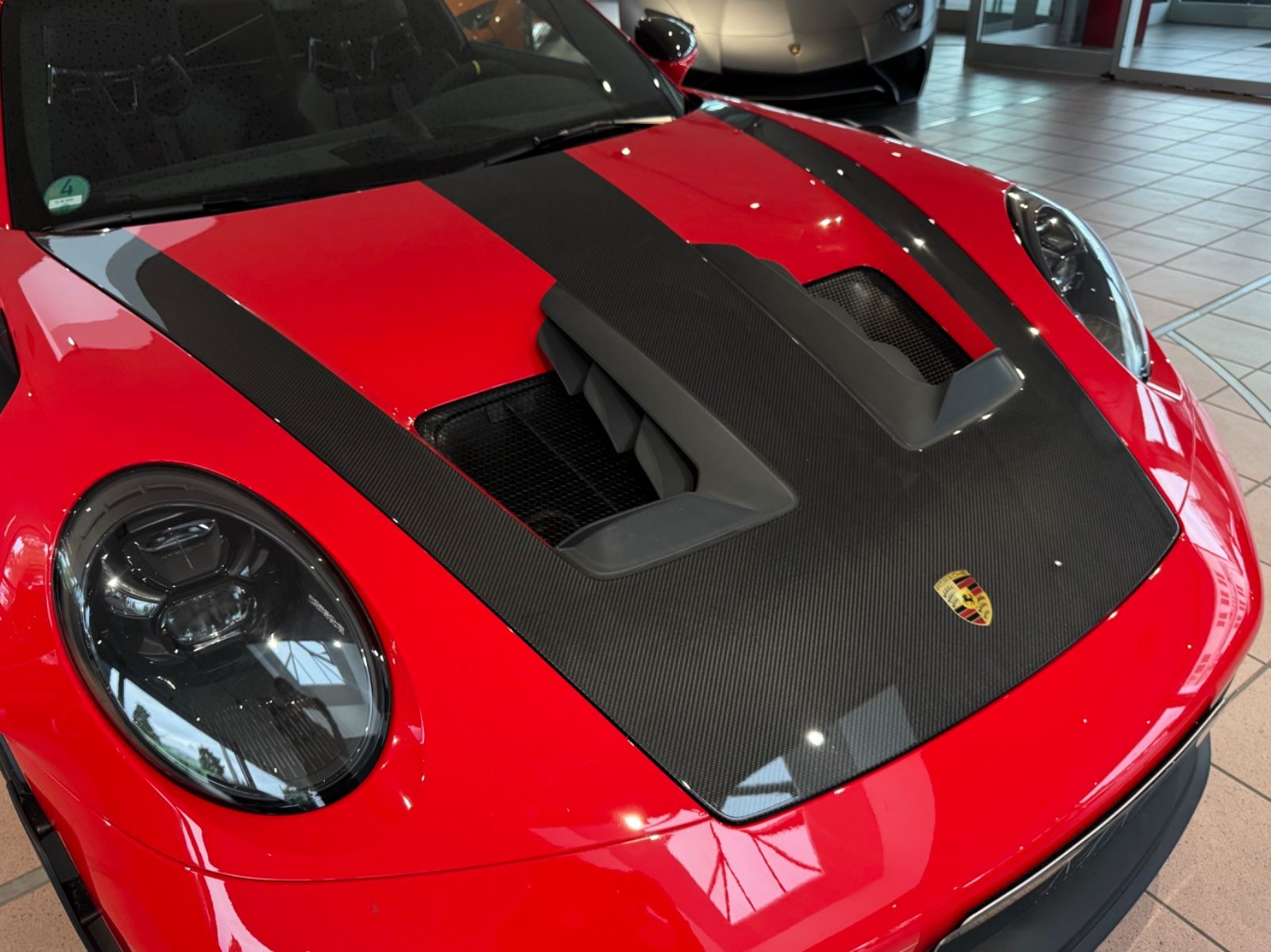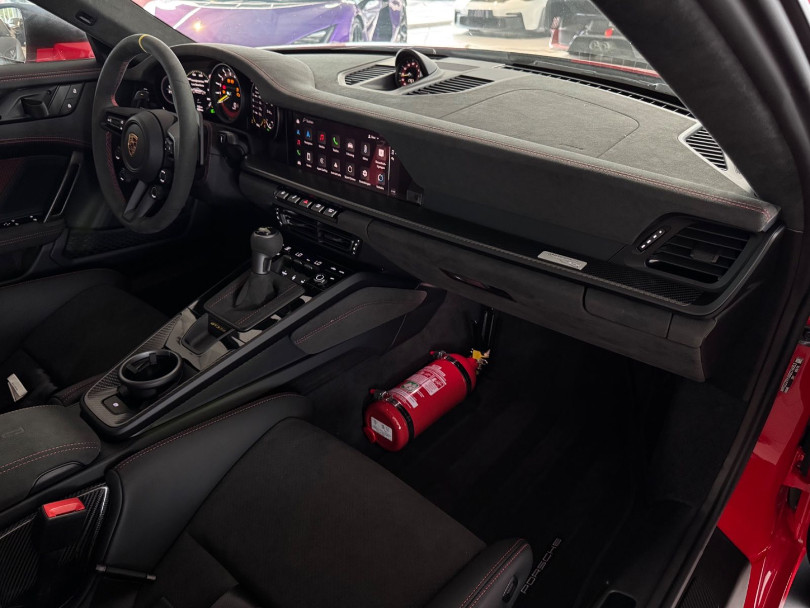 Außenspiegel elektr. verstell- und heizbar, beide, Blinkleuchten LED, Connect Plus (Bluetooth, Apple CarPlay, WLAN, Diebstahl-Warnanlage mit Innenraumüberwachung, Drehzahlmesser, Einschaltautomatik für Fahrlicht, Berganfahr-Assistent (Hill-Holder), Park-Assistent, Remote Parklenkassistent, Fensterzierleisten schwarz, Frontscheibe mit Bandfilter oben, Fußmatten, Getriebe 7-Gang - Sport Doppelkupplungsgetriebe (PDK), Getränkehalter, Flügelstützen schwarz, Keyless Drive, Kleiderhaken Sitzrückenlehne Leder, Kopf-Airbag-System (Curtain-Airbag), Kopf-Airbag-System Porsche Side Impact Protection System (POSIP), Kopf-Schulter-Airbag vorn (Thoraxbag), Kotflügel vorn Carbon in Wagenfarbe, Leichtbau und Geräuschschutz Verglasung, Leichtbau-Batterie (Lithium-Ionen), Lenkrad (GT Sport / Race-Tex) mit Multifunktion und Schaltfunktion, Mobile Online Dienste Android Auto, Modellbezeichnung lackiert, Porsche Communications Management (PCM) inkl. Online - Navigationsmodul, Porsche Torque Vectoring Plus (PTV Plus), Radioempfang digital (DAB+), Radnaben - Abdeckungen Porschewappen farbig, Radnaben mit Zentralverschluss, Reifendruck-Kontrollsystem, Schriftzug Modell-Schriftzug seitlich, farbig, Schwellerabdeckung / -verkleidung, Sonnenblenden mit Spiegel (beleuchtet), Sport-Auspuffanlage, Endrohre schwarz, Sport-Chrono-Paket, Sport-Fahrwerk (PASM) elektronisch gesteuert, Start/Stop-Anlage, Tankdeckel Exclusive Design, Vierradlenkung,