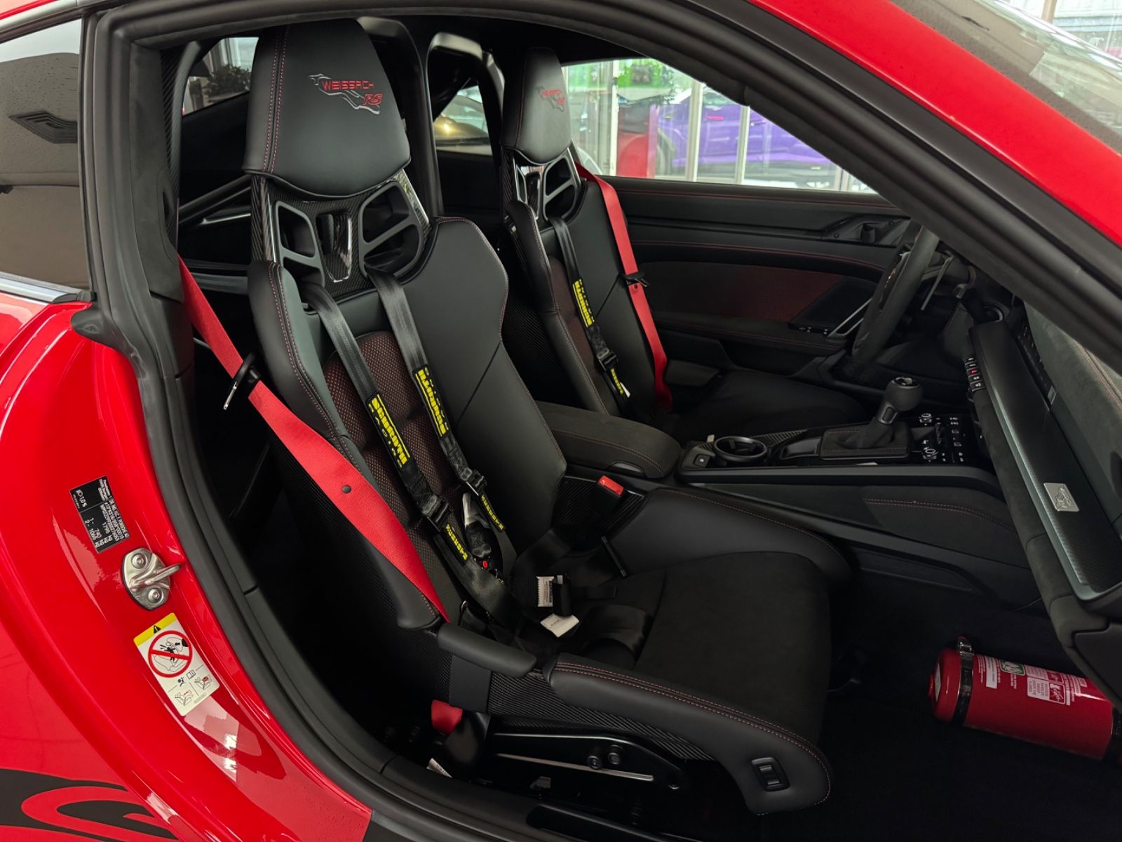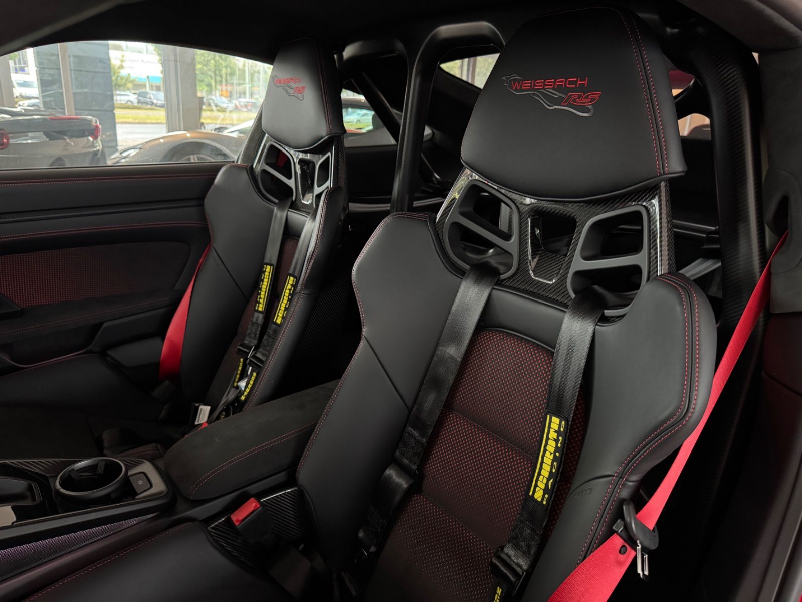 Innenausstattung Weissach-Paket mit erweiterten Leder-und Race-Tex Umfängen, Schwarz/Indischrot