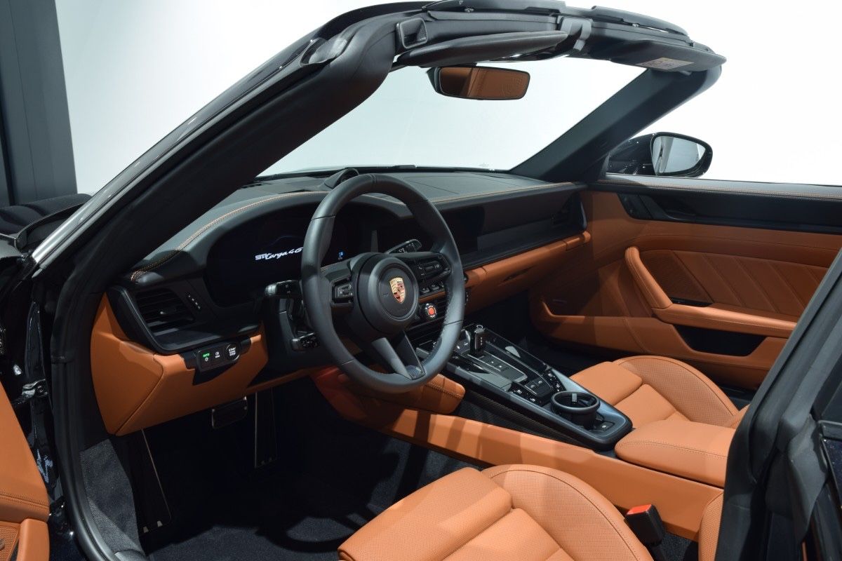 ** Ablagefachverkleidung in Leder Ablagenetz in den Fußräumen seitlich Abstandsregeltempostat (ACC) Adaptive Sportsitze inkl. Sitzverstellung 18-Wege und Memory-Paket BOSE® Surround Sound-System Bremssättel hochglanzschwarz lackiert Clublederausstattung in Schwarz/Klassik-Cognac Einstiegsblenden Aluminium Schwarz eloxiert, beleuchtet Einstiegsblenden mit Modellbezeichnung Exterieurpaket in Schwarz Hochglanz GT-Sportlenkrad beheizbar in Leder HD-Matrix LED-Hauptscheinwerfer, abgedunkelt, inkl. Porsche Dynamic Light System Plus (PDLS+) Jetblack Metallic Lederpaket 930 Lenksäulenverkleidung in Leder Memory-Paket Porsche Entry & Drive / Komfortzugang Porsche Wappen auf Kopfstützen geprägt Power Steering Plus / Servolenkung Plus Reifenreparaturset Sitzbelüftung vorn Sport-Design-Paket schwarz Spurwechselassistent Surround View Schwellerabdeckung / -verkleidung schwarz seidenglänzend Sportdesign Targabügel in Schwarz Tankdeckel in Exclusive Design Verbandtasche Verdeck in Schwarz Verglasung getönt „PORSCHE“-Logo LED-Türprojektoren 20-/21-Zoll Räder mit Zentralverschluss