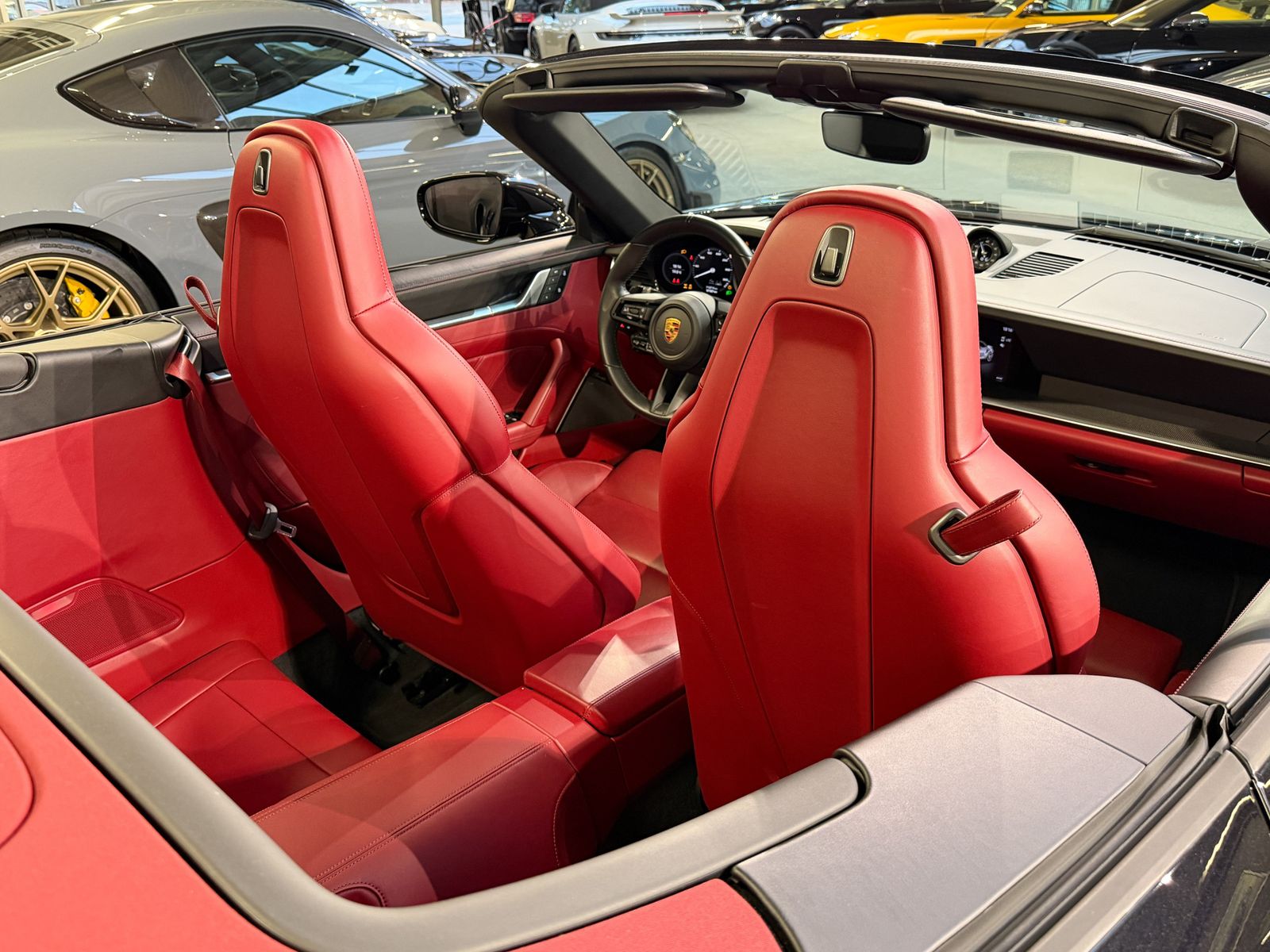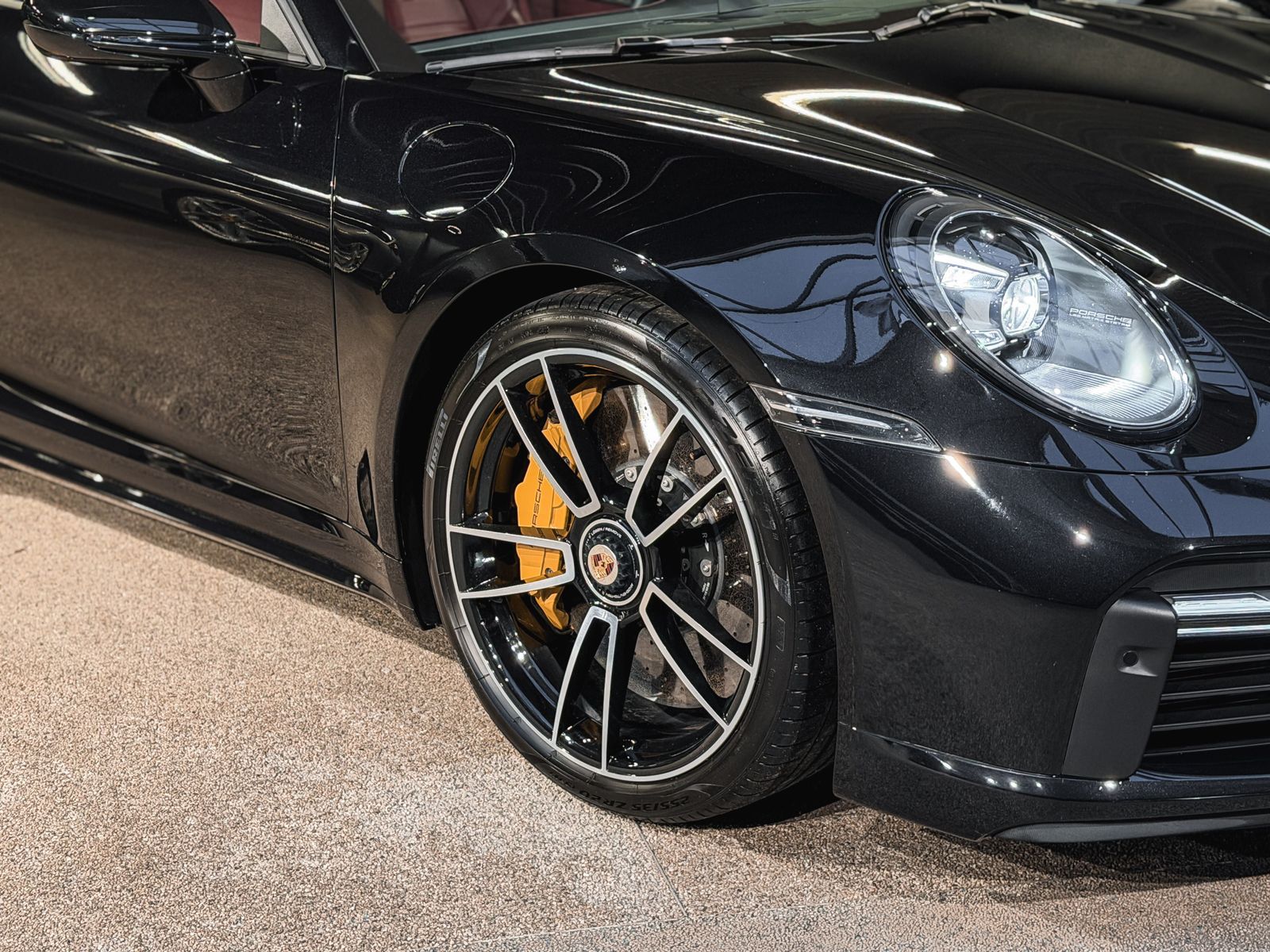 Außenausstattung LM-Felgen vorn/hinten: 9x20 / 11,5x21 (911 Turbo S Rad) Windschott elektrisch Komfort/Innenausstattung Adaptive Sportsitze inkl. Sitzverstellung 18-Wege und Memory-Paket Ambiente-Beleuchtung Dachhimmel Außenspiegel elektr. anklappbar Außenspiegel elektr. verstell- und heizbar, beide Connect Plus (Bluetooth, Apple CarPlay, WLAN, Vehicle-Tracking-System) Drehzahlmesser Fahrassistenz-System: Park-Assistent vorn und hinten Fahrassistenz-System: Park-Assistent vorn und hinten inkl. Rückfahrkamera Fahrassistenz-System: Porsche InnoDrive inkl. Abstandsregeltempomat Fensterheber elektrisch Frontkamera Isofix-Aufnahmen für Kindersitz an Beifahrersitz Klimaautomatik 2-Zonen Lenkrad heizbar (GT Sport / Leder) mit Multifunktion und Schaltfunktion Mobile Online Dienste Android Auto Porsche Communications Management (PCM) inkl. Online - Navigationsmodul Radioempfang digital (DAB+) Rückfahrkamera Servolenkung elektro-mechanisch Servolenkung Plus (geschwindigkeitsabhängig) Sitzbelüftung vorn Sitzheizung vorn Sound-System Burmester High-End Surround Start/Stop-Anlage Verglasung getönt Zentralverriegelung mit Funkfernbedienung Sicherheit/Umwelt Airbag Fahrer-/Beifahrerseite Antriebsart: Allradantrieb Diebstahl-Warnanlage mit Innenraumüberwachung Einschaltautomatik für Fahrlicht Fahrassistenz-System: Berganfahr-Assistent (Hill-Holder) Fahrassistenz-System: Kollisionswarnsystem mit Bremseingriff und Fußgängererkennung Fahrassistenz-System: Spurwechselassistent Geschwindigkeits-Regelanlage (Tempomat) mit Abstandsregelung Innenraumlicht-Paket / Licht-Design-Paket Keramik-Bremsanlage (Porsche Ceramic Composite Brake, PCCB) Kopf-Airbag-System Porsche Side Impact Protection System (POSIP) Kopf-Schulter-Airbag vorn (Thoraxbag) Matrix-LED-Scheinwerfer inkl. Porsche Dynamic Light System Plus (PDLS+) Otto-Partikelfilter (OPF) Porsche Active Suspension Management (PASM) Reifendruck-Kontrollsystem Tagfahrlicht LED Wegfahrsperre Sitzbezug bordeaux Sonstiges Außenspiegel asphärisch, links Außenspiegel lackiert Blinkleuchten LED Bremssättel Gelb lackiert Cabrio Dachhimmel Race-Tex Dachhimmel Stoff Einstiegsblenden (Carbon) beleuchtet Einstiegsleuchte mit LED-Projektor Porsche-Schriftzug Fahrassistenz-System: Porsche Dynamic Chassis Control (PDCC) Frontscheibe mit Bandfilter oben Fußmatten Getränkehalter Getriebe 8-Gang - Doppelkupplungsgetriebe (PDK) Heckleuchten LED Heckscheibe heizbar Heckspoiler Hinterachs-Quersperre elektron. geregelt Innenausstattung: Zierblende Schalttafel Carbon Innenraumfilter: Aktivkohlefilter (Geruchsfilter) Interieur-Paket: Carbon Karosserie: 2-türig Keyless Drive Kleiderhaken Sitzrückenlehne Leder Leder-Paket 930 Liftsystem Vorderachse Lufteinlassblende Seitenwand lackiert Mittelkonsole, Blende vorn Carbon Modellbezeichnung lackiert Motor 3,8 Ltr. - 478 kW Turbo KAT Parkbremse elektrisch Porsche Stability Management (PSM) Porsche Torque Vectoring Plus (PTV Plus) Porsche Traction Management (PTM) Radnaben - Abdeckungen Porschewappen farbig Sicherheitsgurte farbig Sport Sport-Auspuffanlage, Endrohre schwarz Sportsitze Plus - Rückenlehnen Leder, Dekor Leder
