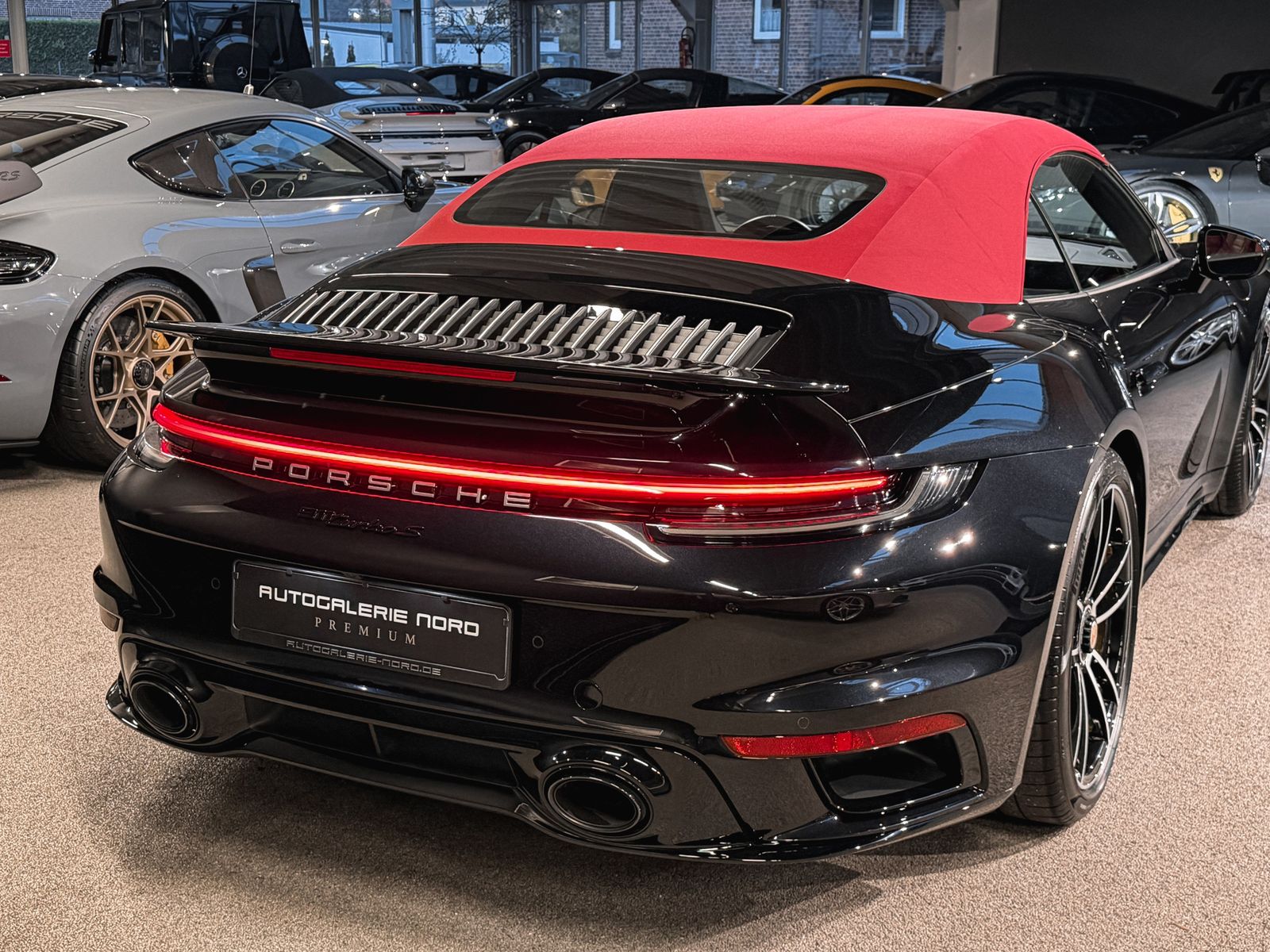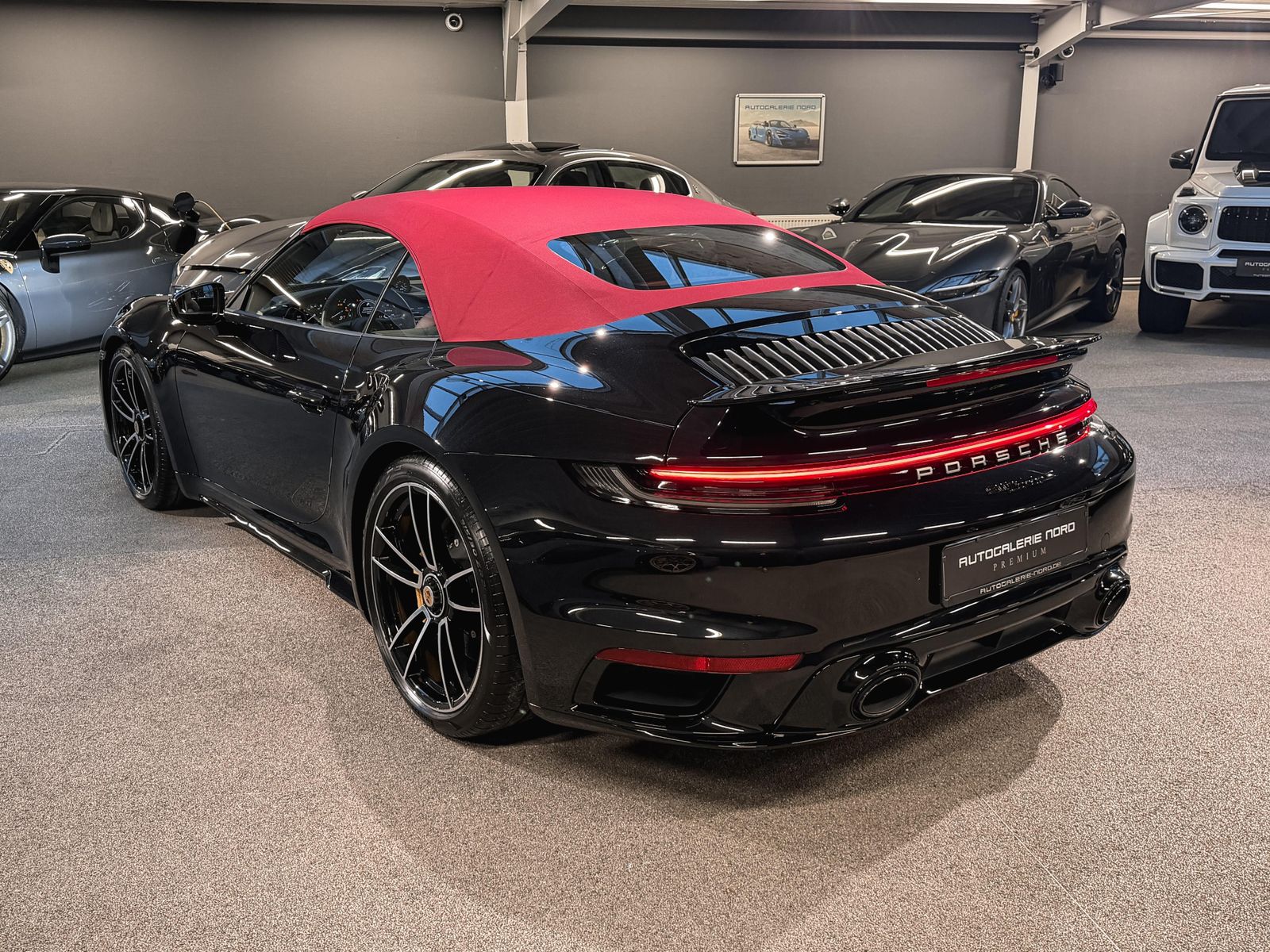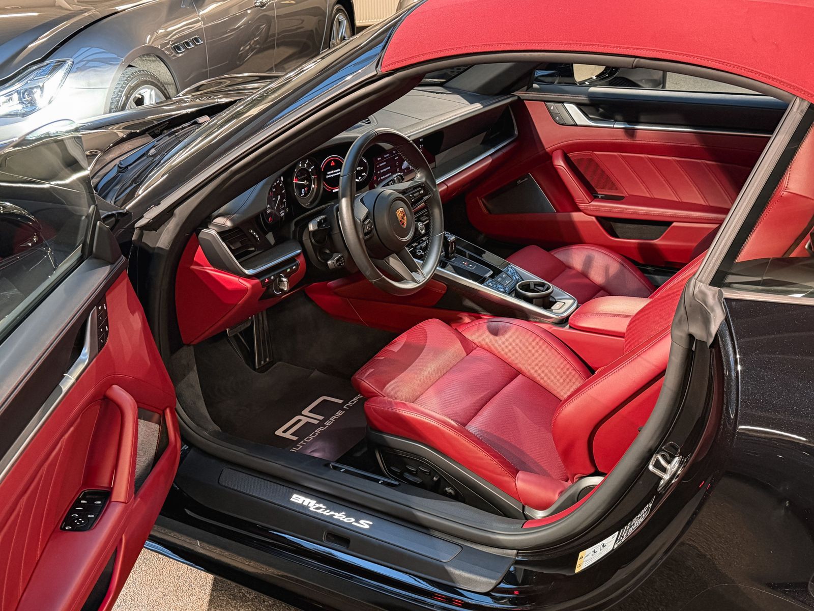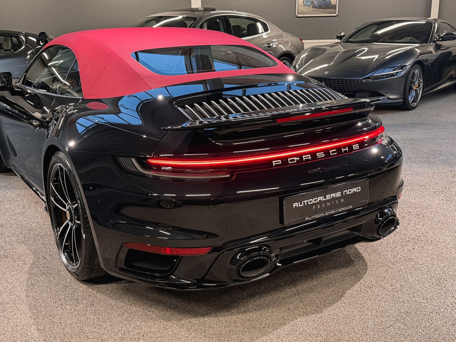 Highlights & Ausstattung Außenfarbe: Schwarz metallic mit bordeauxrotem Stoffdach Innenraum: Bi-Color-Leder Bordeauxrot/Schwarz mit Exclusive Manufaktur Ziernähten Deutsche Erstauslieferung, 1. Hand, unfallfreiSonderausstattung (Auszug): Porsche InnoDrive inkl. Abstandsregeltempomat Spurwechselassistent Einstiegsblenden in Carbon, beleuchtet Ambientebeleuchtung & Licht-Design-Paket GT-Sportlenkrad beheizbar mit Multifunktion Liftsystem Vorderachse Sitzbelüftung vorne Sportabgasanlage mit Endrohren in Schwarz Sport Chrono Paket mit Mode-Schalter Burmester High-End 3D-Surround-Soundsystem 20/21 Zoll Leichtmetallräder (911 Turbo S Design)