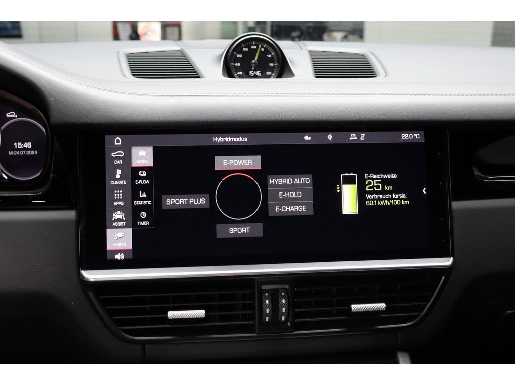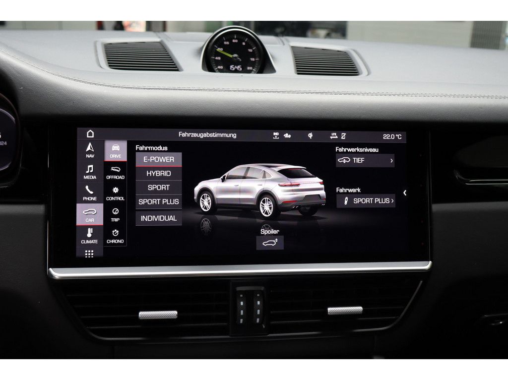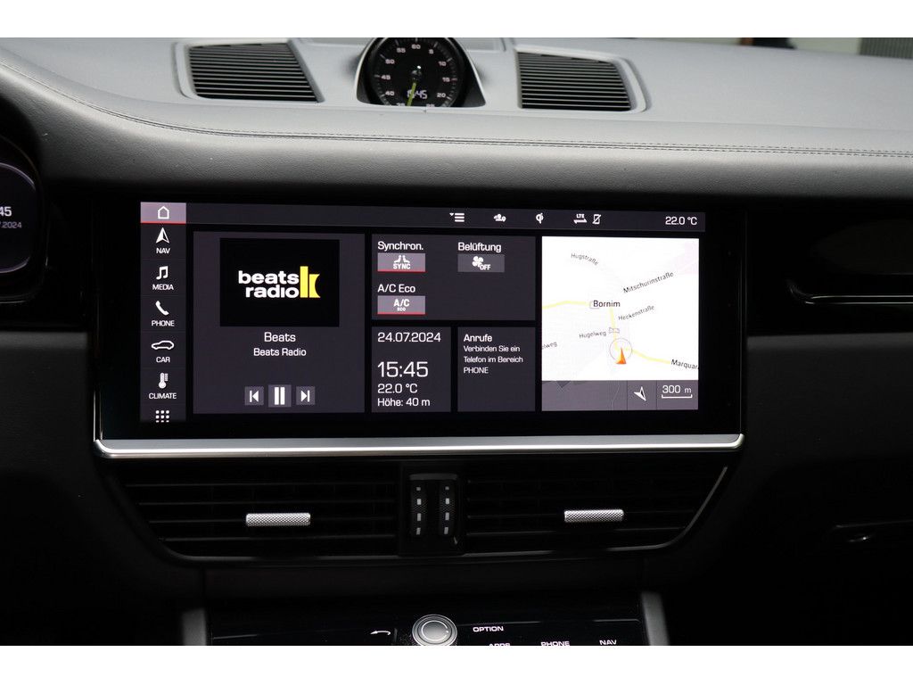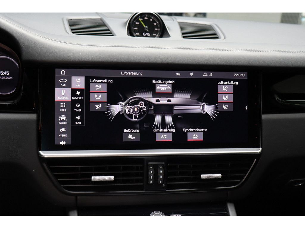 Assistenzsysteme: Abstandsregeltempomat Launch Control Verkehrszeichenerkennung Parklenkassistent PDC (Einparkhilfe) Rückfahrkamera Surround View Bergabfahrassistent Berganfahrassistent Lichtsensor Regensensor Einparkhilfe vorne Porsche InnoDriveLicht: Matrix LED Scheinwerfer Porsche Dynamic Light System (PDLS) LED (Teil)-Rückleuchten LED Tagfahrlicht Umgebungs-/Umfeldausleuchtung LED (Teil-) Blinker Heckleuchten getöntMedia & Infotainment: PCM Navigation W-LAN Hotspot / Vorbereitung Soundsystem Soundsystem BOSE Radio Audiosystem MP3-fähig DAB Tuner USB-Schnittstelle/Anschluss Freisprecheinrichtung Sprachsteuerung-/Bedienung Telefonvorbereitung mit Bluetooth Apple Car Play / VorbereitungSicherheit & Technik: Luftfederung Porsche Active Suspension Management (PASM) Sporttaste Porsche Stability Management (PSM) Beifahrerairbag Beifahrerairbag-Deaktivierung Fahrerairbag Knieairbag Kopfairbags hinten Kopfairbagsystem Seitenairbags hinten Seitenairbags vorn aktive Motorhaube Alarmanlage Antiblockiersystem (ABS) Antriebsschlupfregelung (ASR) automatisches Bremsdifferenzial (ABD) Diebstahl Ortungssystem Fahrprofilauswahl Gurtanlegekontrolle Multikollisionsbremse Porsche Traction Management (PTM) Seitenaufprallschutz Sicherheitsgurte mit Gurtstraffern WegfahrsperreKomfort & Klima: elektrische Sitzverstellung Fahrer/Beifahrer mit Fahrermemory Memory-Funktion für Beifahrersitz Soft Close Automatik (SCA) Memory Paket Sitzbelüftung Spiegel elektrisch klappbar elektrische Parkbremse Innen-/Aussenspiegel automatisch abblendend Seitenrollo 2xKlimaautomatik elektr. Spiegel beheizt ISOFIX Kindersitzbefestigung Zentralverriegelung mit Fernbedienung (4-Zonen Klimaautomatik) 4xSitzheizung abgedunkelte Scheibe(n) adaptive Sportsitze Aktivkohlefilter Center Lock Schalter Colorglas Fondsitzbank mit zwei Sitzplätzen Heckscheibenwischer schlüsselloser Motorstart Servotronic Standklima teilbare Rücksitzbank/-LehneReifen & Felgen: Alufelgen 22 Zoll Pannenset Radnabenabdeckungen mit farbigem Porsche Wappen Reifendruck-KontrolleExterieur & Design: selbsttätig ausfahrender Heckspoiler Bremssättel schwarz AHK elektrisch klappbar DachspoilerInterieur & Design: lederbezogene Armaturentafel Lenkradheizung Panoramadach Sport Chrono Paket Schaltwippen am Lenkrad Sportlederlenkrad Multifunktionslenkrad Ambientebeleuchtung Bedienelemente am Lenkrad Getränkehalter Sonnenblende(n) beleuchtet mit Make-Up Spiegel Türeinstiegsblenden aus Edelstahl/Einleger Zierteile in Klavierlack-OptikGepäck- / Ladehilfen: ebener Ladeboden automatische Heckklappe-/DeckelUmwelt & Laden: E10 geeignet EURO 6d-TEMP Hochvoltbatterie Katalysator Ladekabel Ottopartikelfilter Start/Stopp Automatic Umweltplakette 4Getriebe: tiptronicWeitere Informationen: Plug-in-Hybrid Scheckheft unfallfrei Zweitbesitz