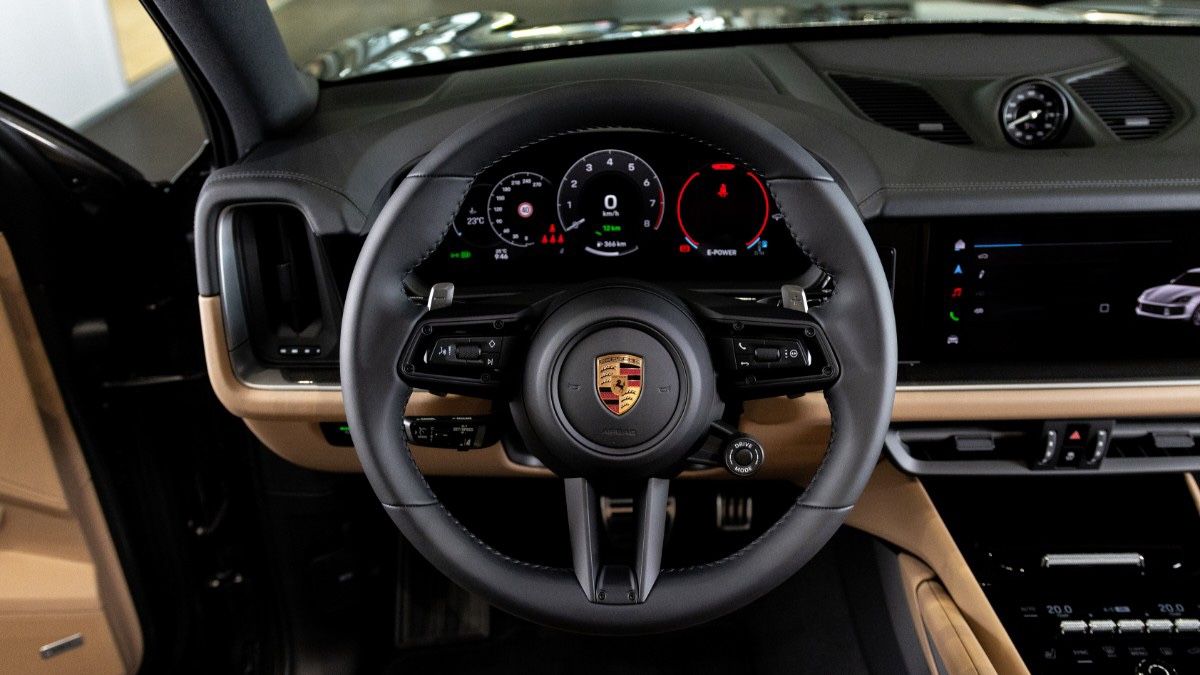 porsche-code.com/PT8DL7U2** 1BK – Adaptive Luftfederung inklusive Porsche Active Suspension Management (PASM) Q1J – Adaptive Sportsitze vorn (18-Wege, elektrisch) mit Memory-Paket 3GN – Laderaumbefestigungssystem 9VL – BOSE® Surround Sound-System QJ4 – Fensterzierleisten in Schwarz (hochglänzend) 6FH – Außenspiegel in Schwarz (hochglänzend) lackiert 1D3 – Anhängerkupplung elektrisch ein- und ausfahrbar 5MH – Interieur-Paket Carbon VW1 – Wärmeschutzverglasung, dunkel getönt 4A4 – Sitzheizung vorn und hinten 3FU – Panorama-Festglasdach 3J7 – Porsche Wappen auf den Kopfstützen vorn geprägt 0NT – „PORSCHE“-Schriftzug in Schwarz (matt) und Entfall Modellbezeichnung 2D5 – SportDesign-Paket in Schwarz (hochglänzend) 0P9 – Sportabgasanlage inkl. Sportendrohre in Dark Bronze (hochglänzend) 3S2 – Dachreling in Schwarz (Aluminium, eloxiert, hochglänzend) 8SB – Abgedunkelte LED-Heckleuchten inklusive Lichtband ZLD – Vorbereitung für Anhängerbetrieb „Cayenne Trailer“ 1G8 – Reifenreparaturset mit elektrischem Kompressor 2PJ – GT-Sportlenkrad in Leder, beheizbar PV3 – Abstandsregeltempomat (Adaptive Cruise Control, ACC) BH – Lederpaket in Zweiton-Ausführung – Schwarz/Mojave Beige VF1 – Pedalerie aus Edelstahl JH2 – Beifahrer-Display 47S – 22-Zoll Exclusive Design Sport Räder in Satin Black Ambiente-Beleuchtung Außen-/Innenspiegel mit Abblendautomatik Aktiver Park-Assistent vorn und hinten inkl. Rückfahrkamera und Surround View Matrix-LED-Scheinwerfer Komfortzugang (Schlüssellose Türentriegelung) / Keyless-Entry Servolenkung Plus (geschwindigkeitsabhängig) Soft Close Türen