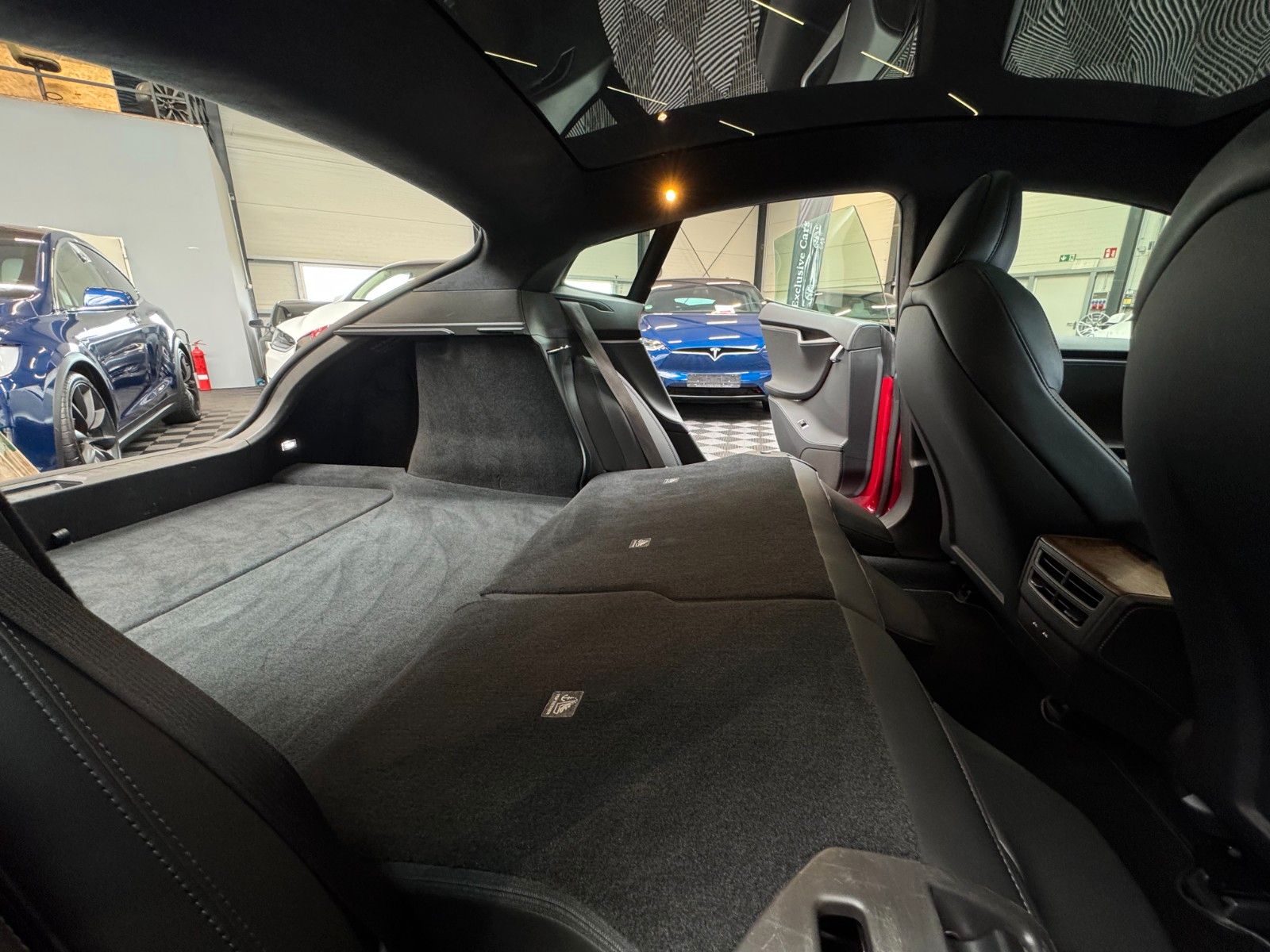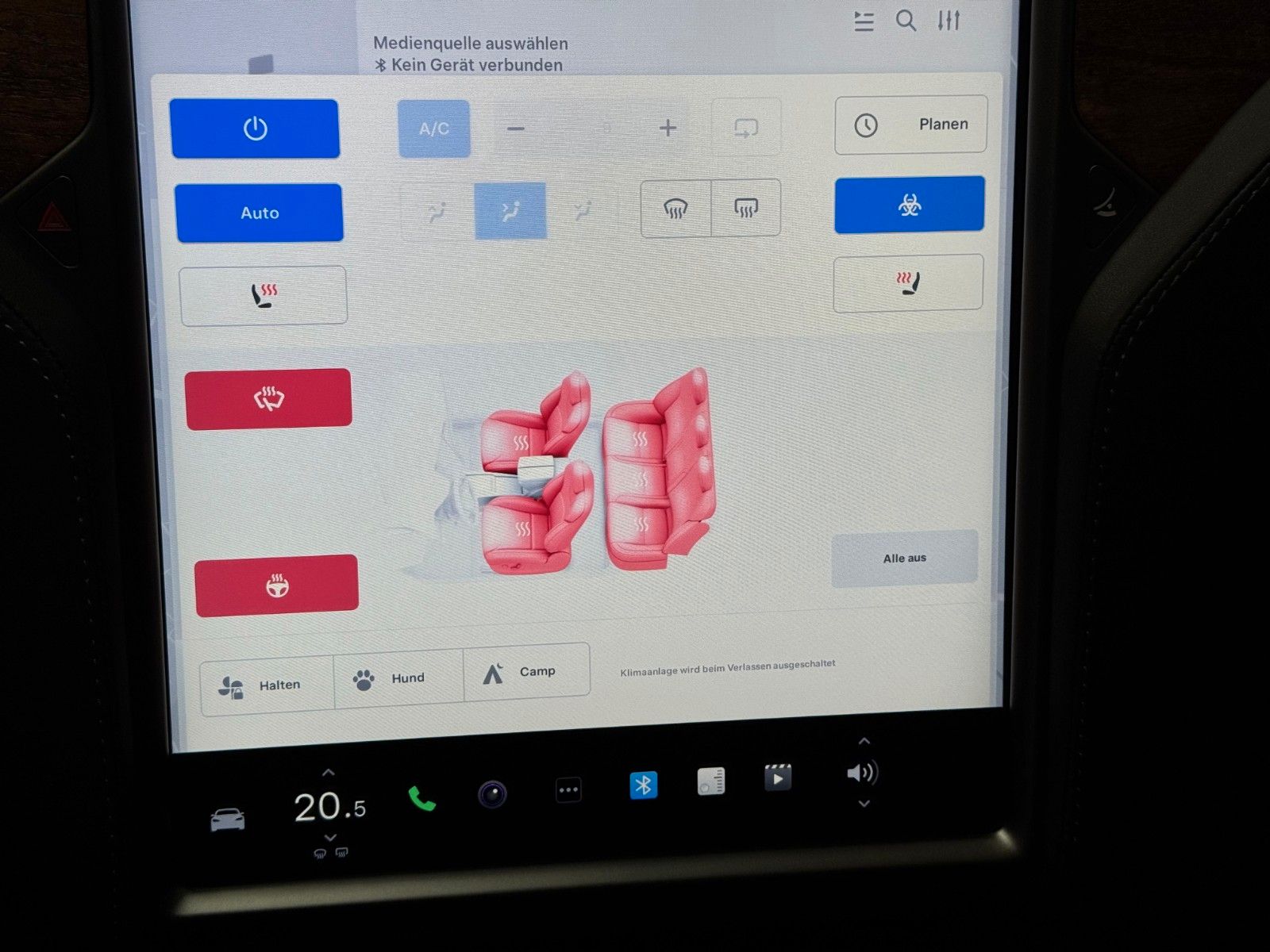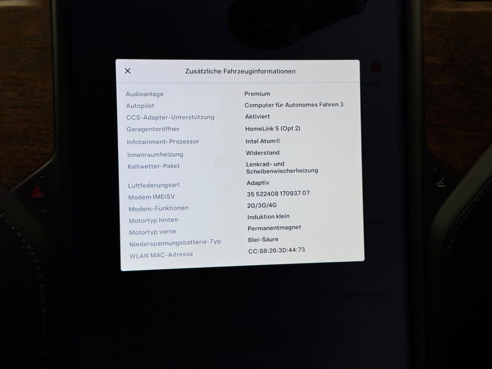 Weitere Ausstattungsmerkmale: air filter + HEPA (high-efficiency particulate absorbing) air filter Autopilot Hardware 3.0 CCS Upgrade aktiviert MCU2 Intel Atom Upgrade Premium Sound Heated seats for every passenger, heated steering wheel, wiper blade defrosters and washer nozzle heaters Active Hood Front Brake Brembo Black Raven Drive Unit Figured Ash Wood Decor App Bedienung u. ein Schlüssel LED Tagfahrlicht teilw. Funktion Premium Interior Lighting Black PUR Premium Seats Red Multi Coat Glass Roof Suspension Update