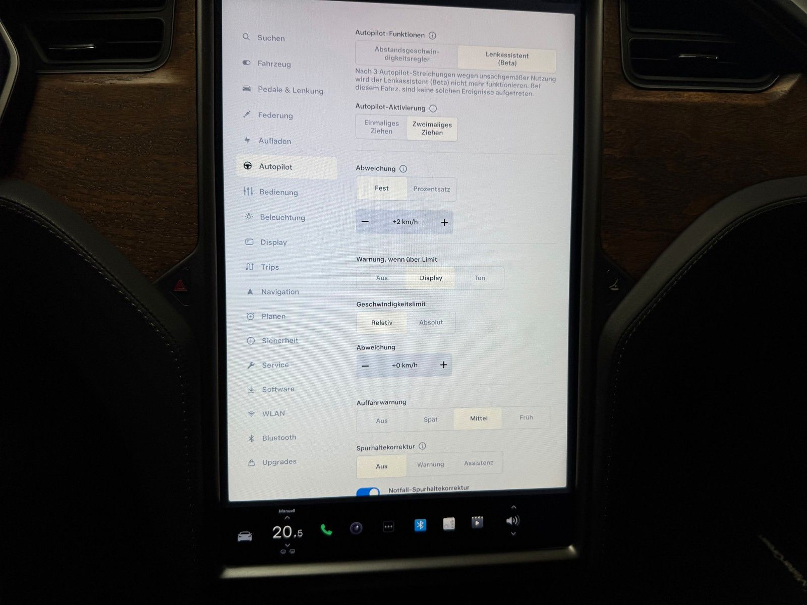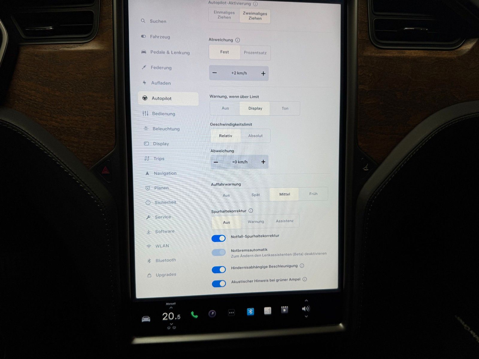 Spurhalteassistent mit automatischem Lenken, Beschleunigen und Bremsen. Lenkassistent (Beta) Akustischer Hinweis bei grüner Ampel Vorschau der Fahrdarstellung für Autonomes Fahren Tempomat Hindernisabhängige Beschleunigung Verkehrszeichenerkennung Totwinkel-Kollisionswarnung Notfall Spurhaltekorrektur automatische Notbremsung AuffahrwarnungGemäß den Tesla Bedingungen.