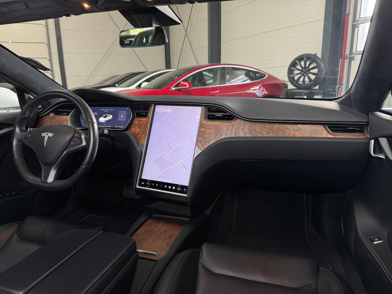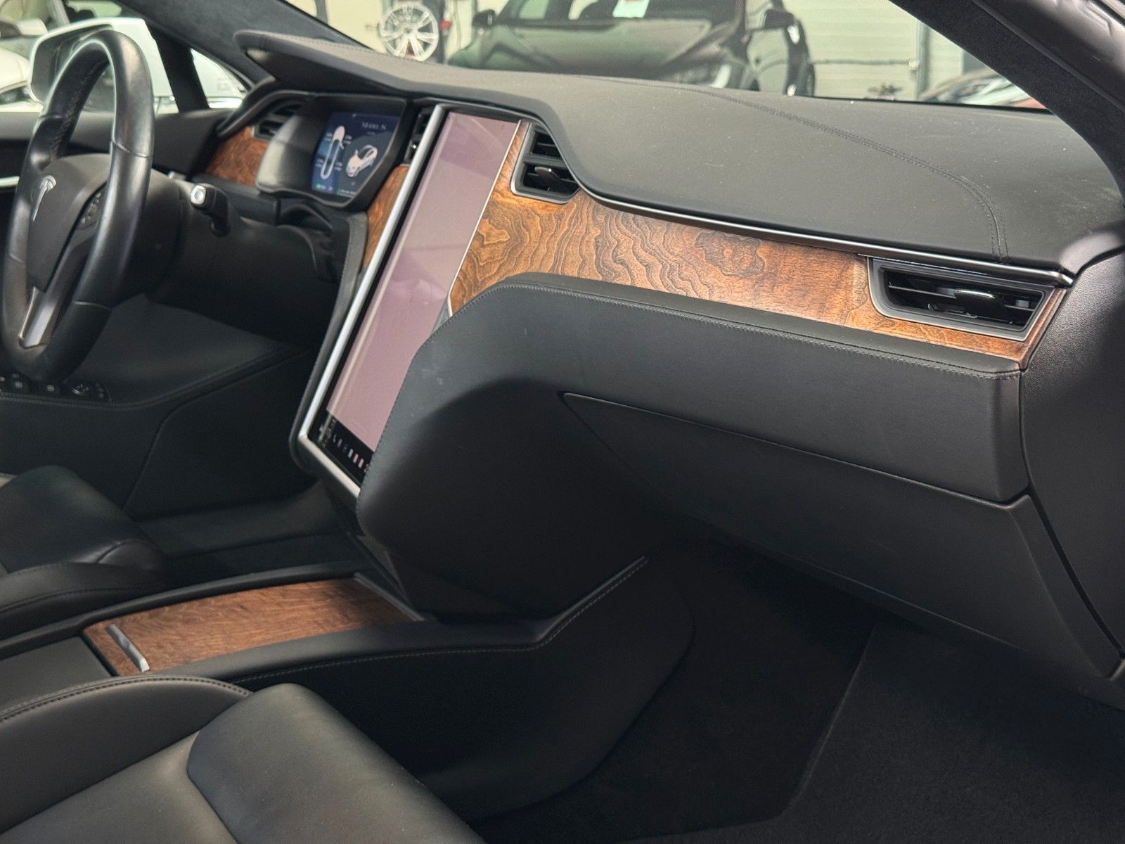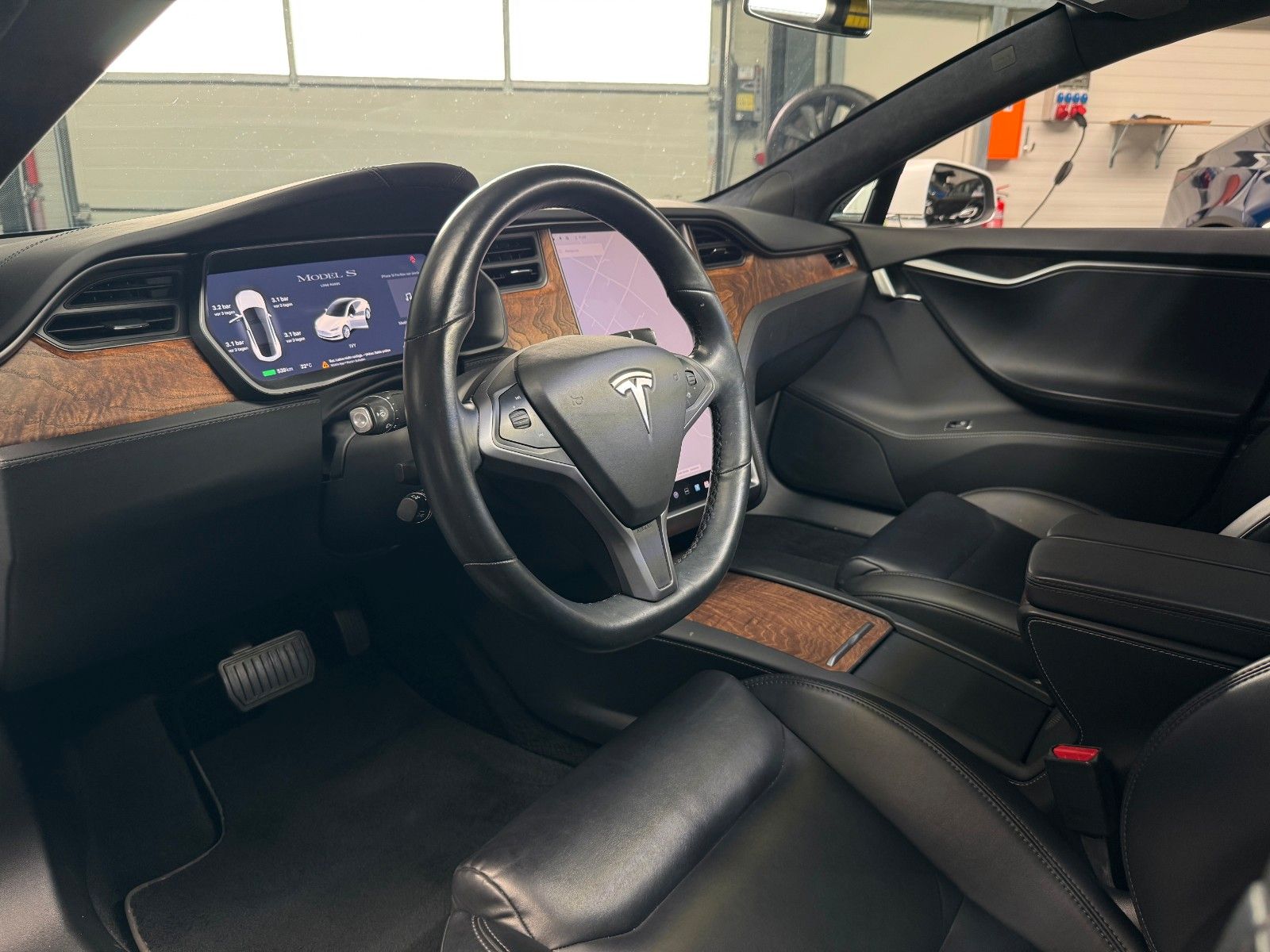 Tesla Model S 100 kWH Long Range Raven Ash Wood Decor Black Pur Tesla Designed Seats Pearl White Multi-Coat air filter + HEPA (high-efficiency particulate absorbing) air filter Autopilot Hardware 3.0 Full Self Drive aktiviert CCS Upgrade aktiviert MCU2 Intel Atom Prozessor Premium Sound Heated seats for every passenger, heated steering wheel, wiper blade defrosters and washer nozzle heaters Front Brake Brembo Black Raven Drive Unit App Bedienung u. ein Schlüssel LED Tagfahrlicht teilw. Funktion Premium Interior Lighting