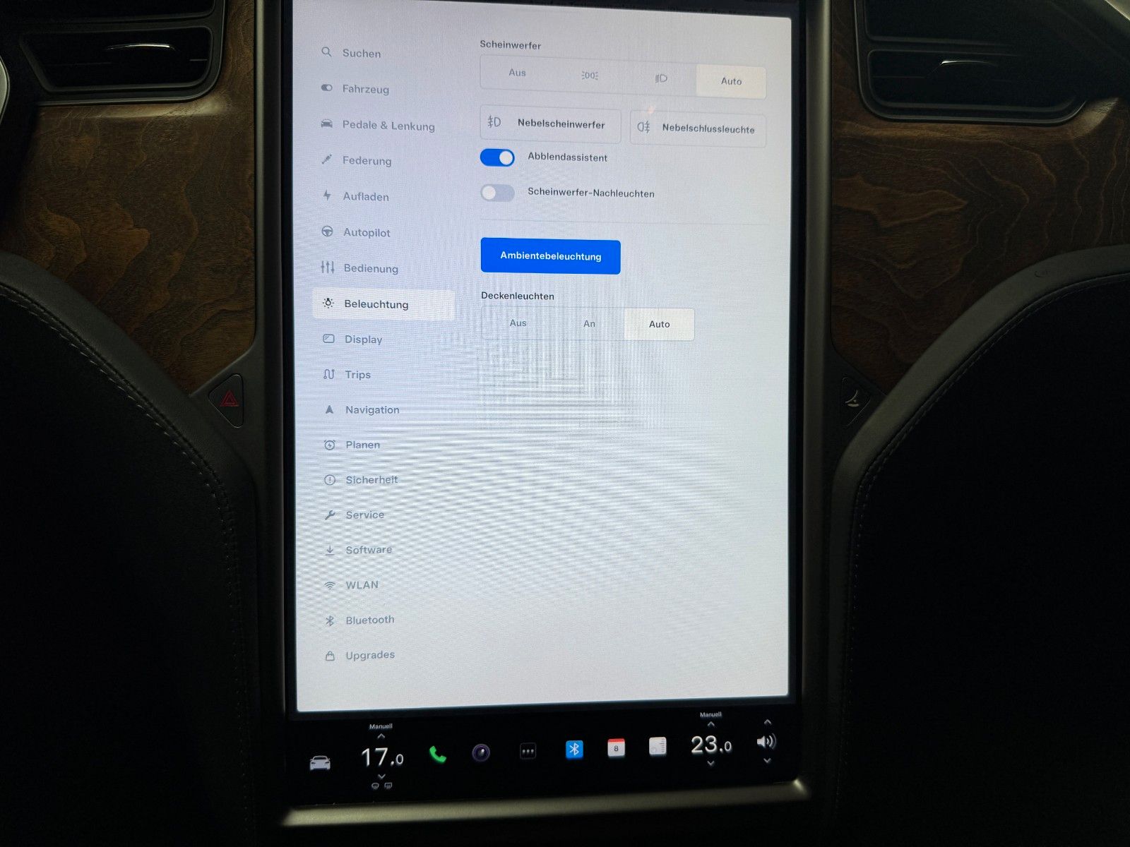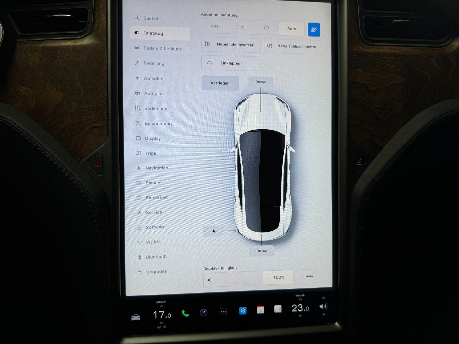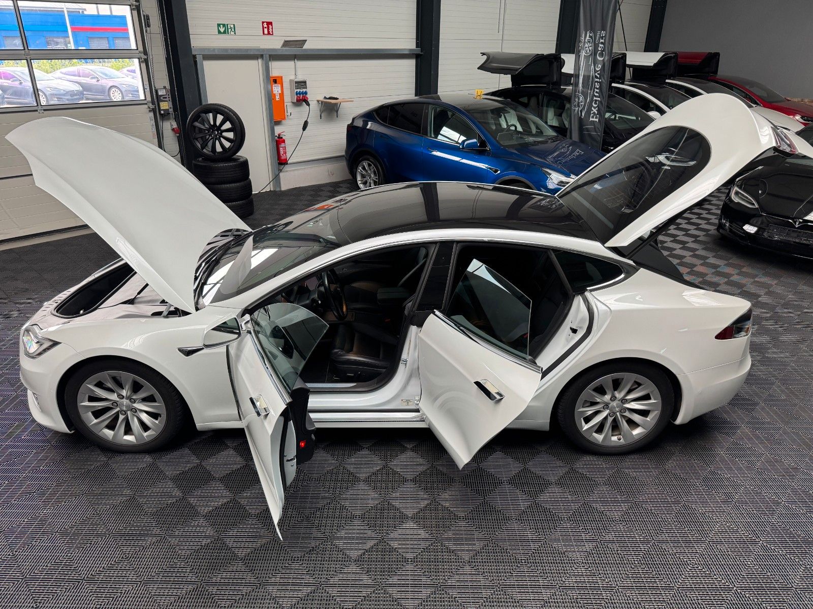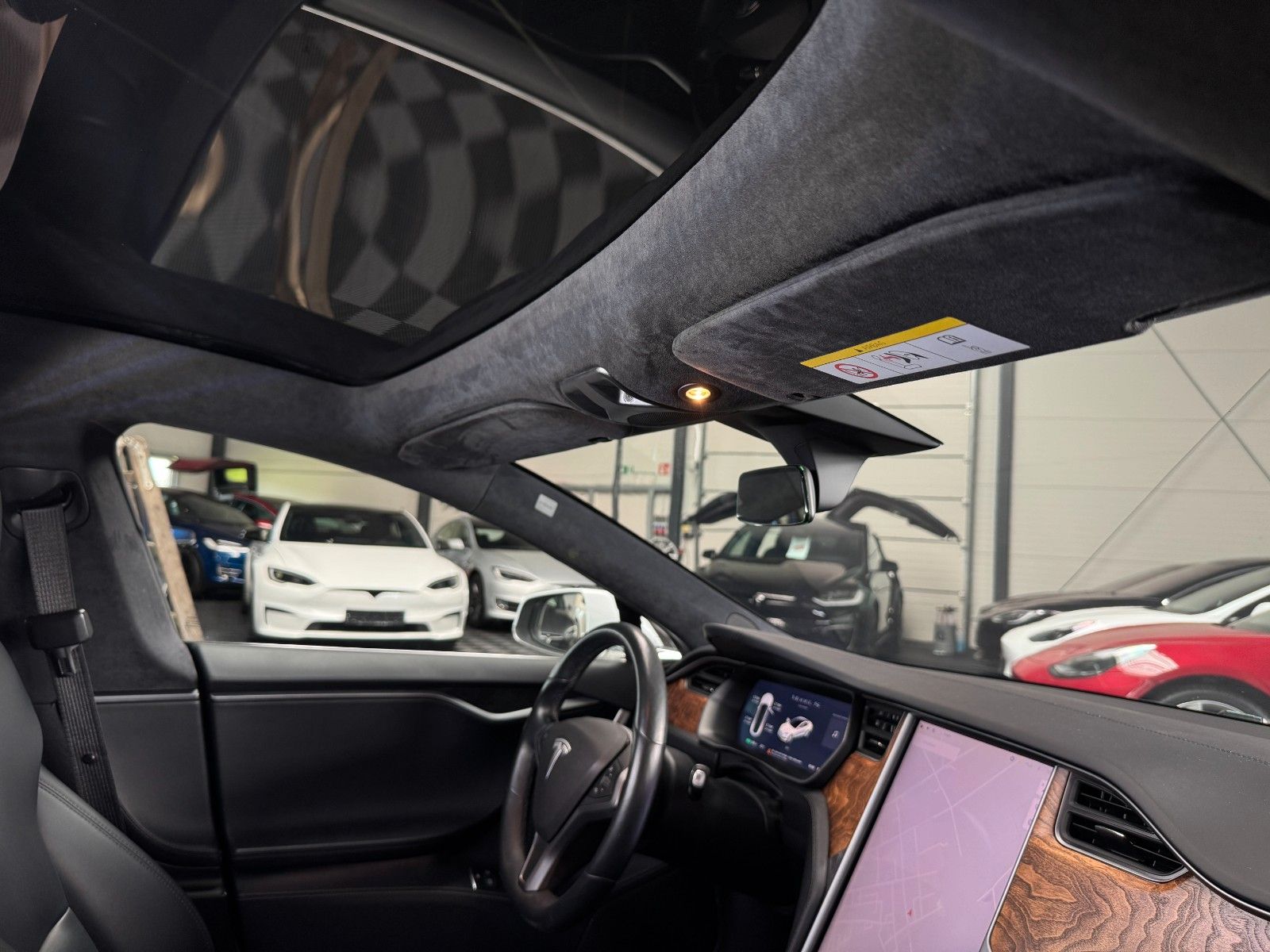 Tesla Model S 100 kWH Long Range Raven Ash Wood Decor Black Pur Tesla Designed Seats Pearl White Multi-Coat air filter + HEPA (high-efficiency particulate absorbing) air filter Autopilot Hardware 3.0 Full Self Drive aktiviert CCS Upgrade aktiviert MCU2 Intel Atom Prozessor Premium Sound Heated seats for every passenger, heated steering wheel, wiper blade defrosters and washer nozzle heaters Front Brake Brembo Black Raven Drive Unit App Bedienung u. ein Schlüssel LED Tagfahrlicht teilw. Funktion Premium Interior Lighting
