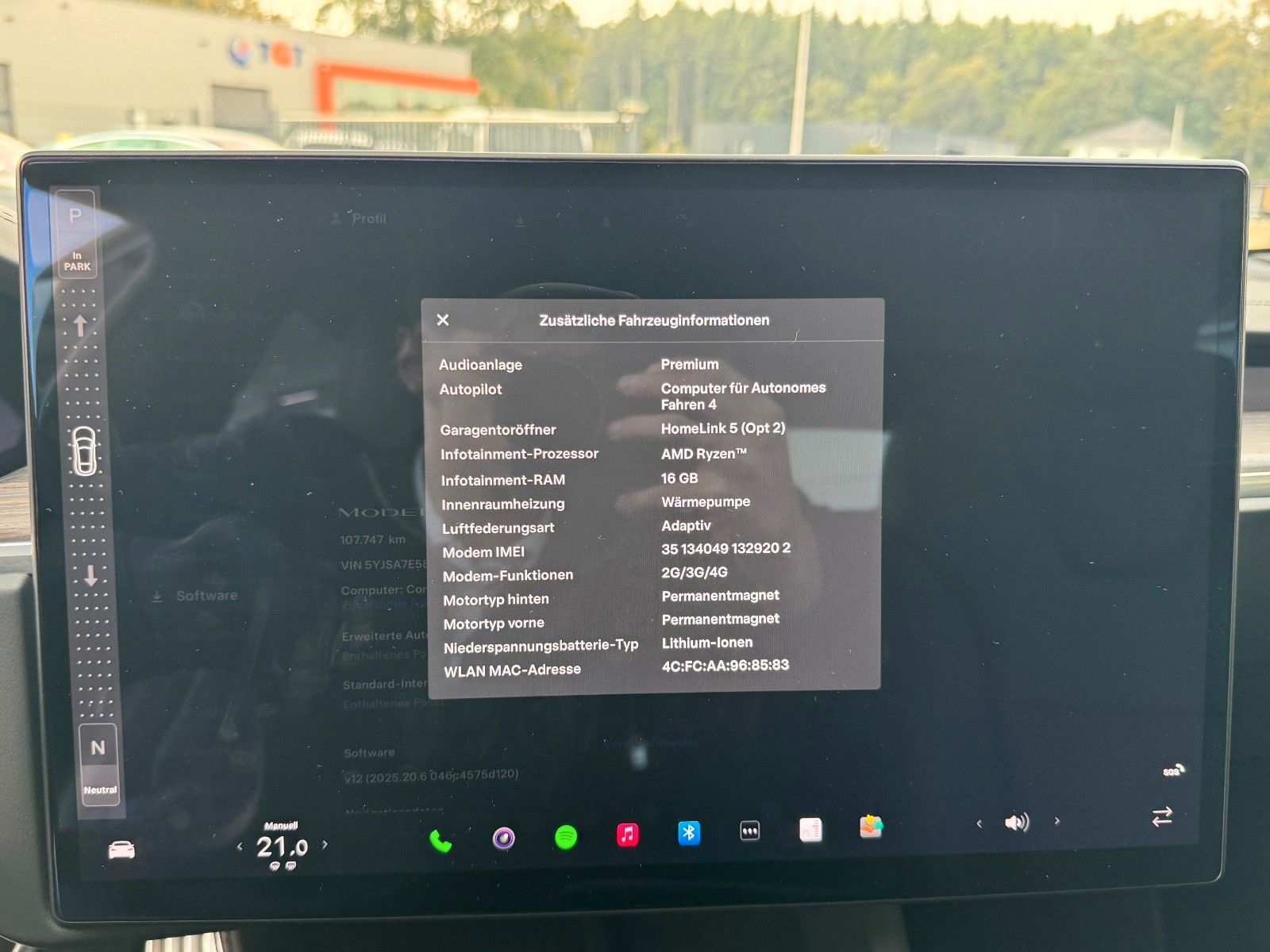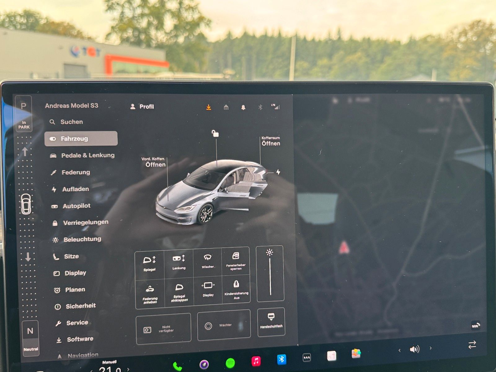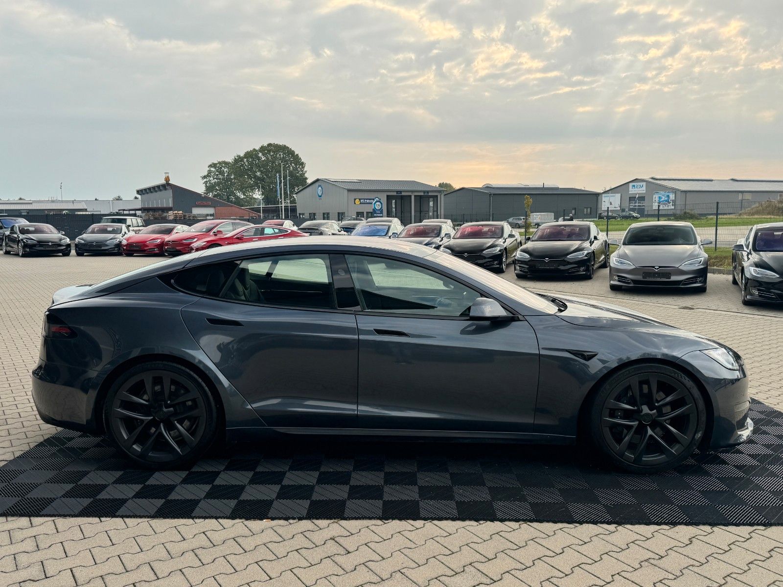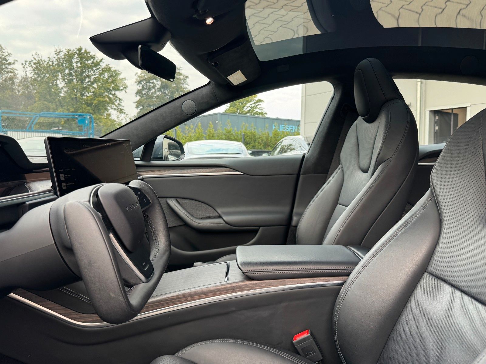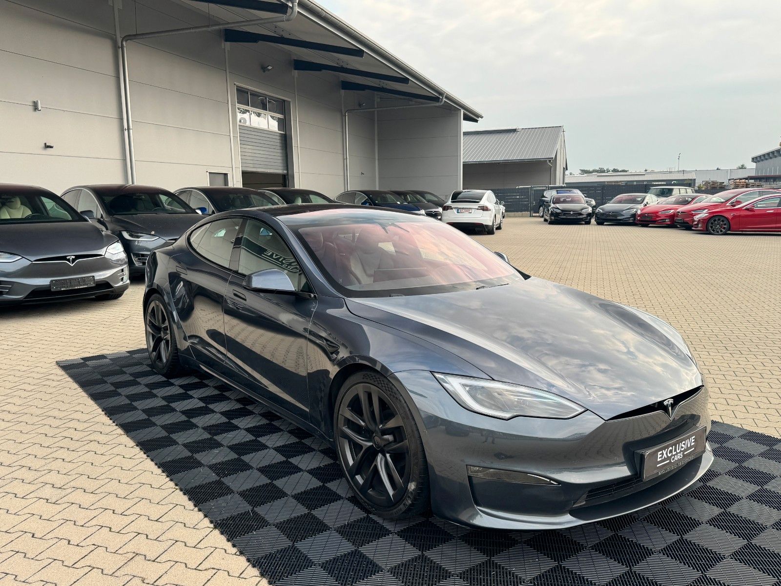 Tesla Model S Long Range Palladium Dual Motor Midnight Silver Metallic PUR Black Colorway Ebony Wood Decor 21 Zoll Archanid Felgen Yoke Steering Autopilot Hardware 4.0 mit Enhanced Autopilot air filter + HEPA (high-efficiency particulate absorbing) air filter AMD Ryzen High End Prozessor Premium Sound Heated seats for every passenger, heated steering wheel, wiper blade defrosters and washer nozzle heaters, Seat Ventilated Front Brake Brembo Black Premium Interior Lighting Glass Roof Suspension Update Palladium