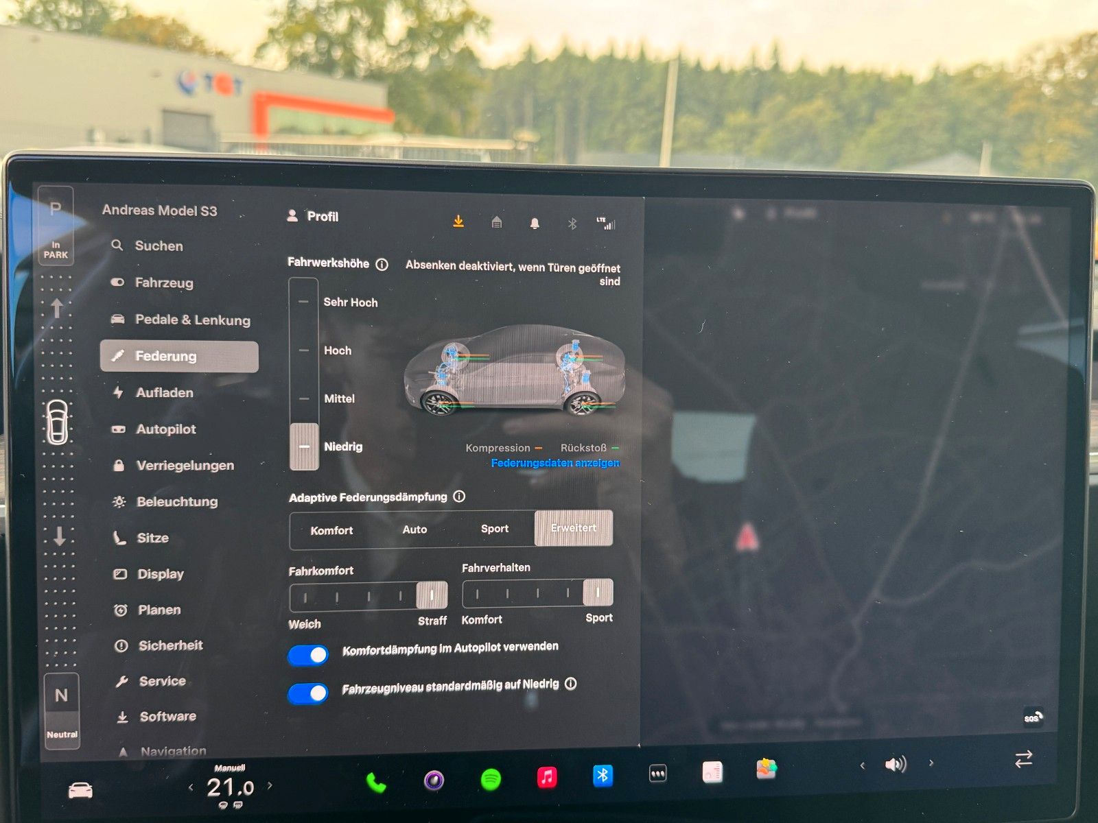 Adaptives Luftfahrwerk → Automatische Höhen- & Dämpferanpassung Manuelle Höhenverstellung → Über Display steuerbar Dynamische Absenkung → Reduziert Luftwiderstand bei hohen Geschwindigkeiten Mehrere Modi → Komfort, Standard, Sport Optimiert für Model S Plaid → Verbesserte Stabilität & Performance Hoher Fahrkomfort & Sportlichkeit → Perfekt für Langstrecke & schnelle Kurven