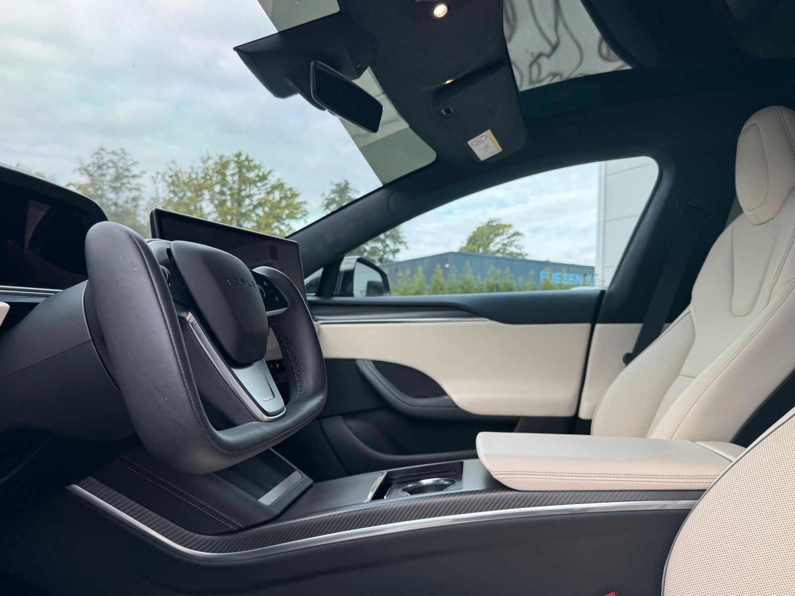 Plaid Tri Motor Autopilot Hardware 3.0 Cream Colorway Carbon Fiber Twill Decor Solid Black Yoke Steering Wheel 21" Arachnid Tow Package Performance Motor