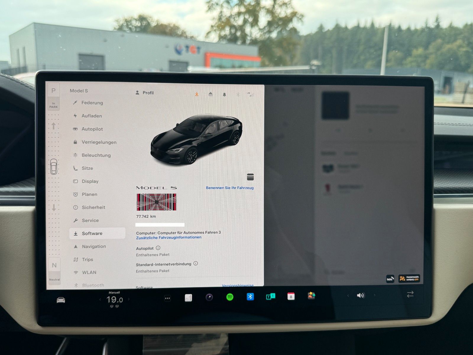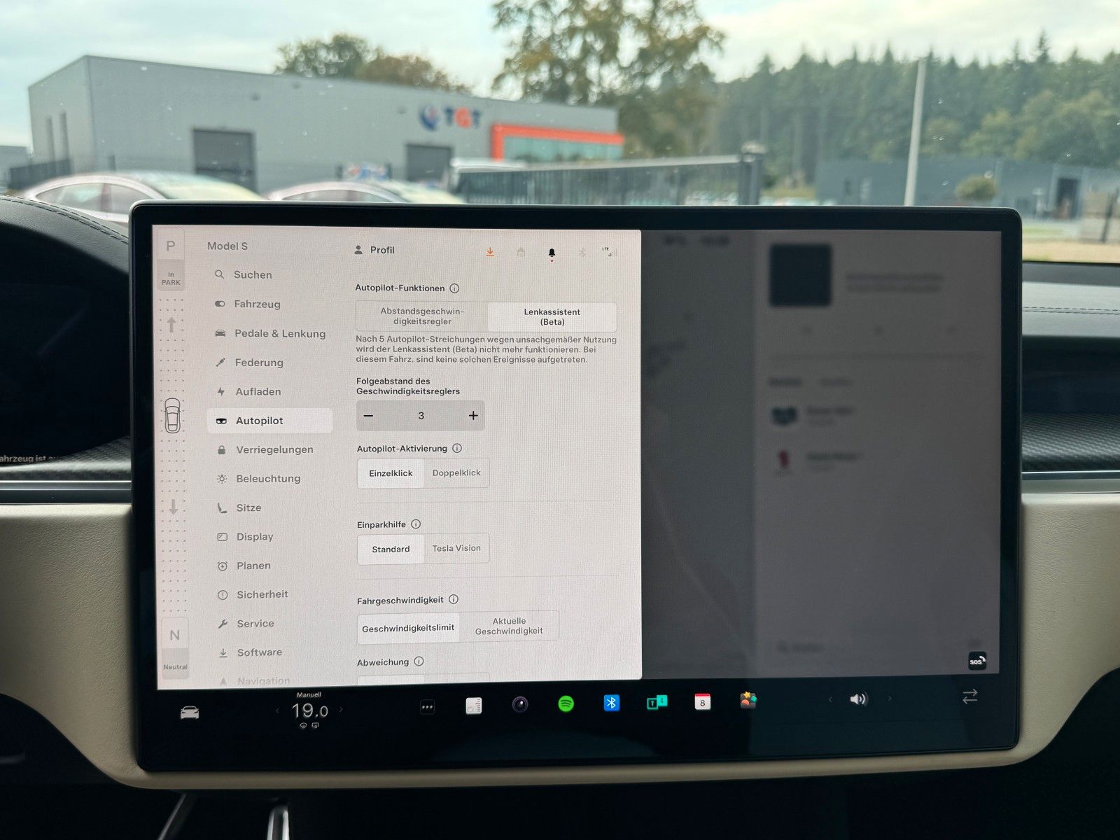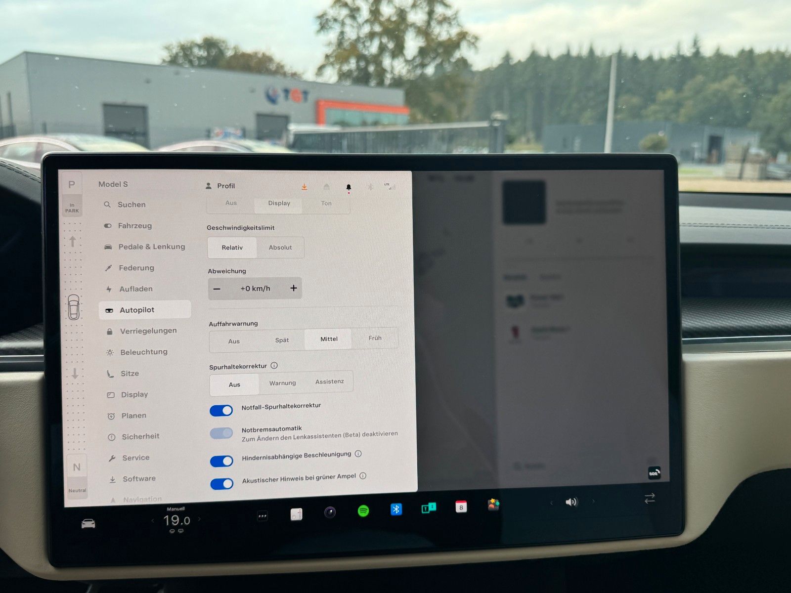 Spurhalteassistent mit automatischem Lenken, Beschleunigen und Bremsen. Lenkassistent (Beta) Akustischer Hinweis bei grüner Ampel Vorschau der Fahrdarstellung für Autonomes Fahren Tempomat Hindernisabhängige Beschleunigung Verkehrszeichenerkennung Totwinkel-Kollisionswarnung Notfall Spurhaltekorrektur automatische Notbremsung AuffahrwarnungGemäß den Tesla Bedingungen.