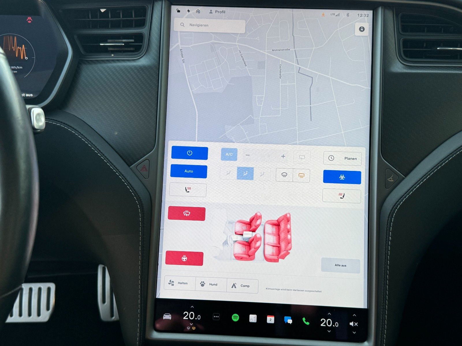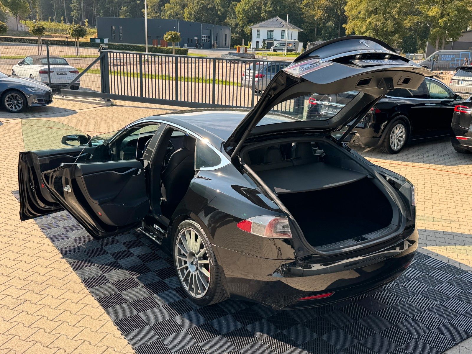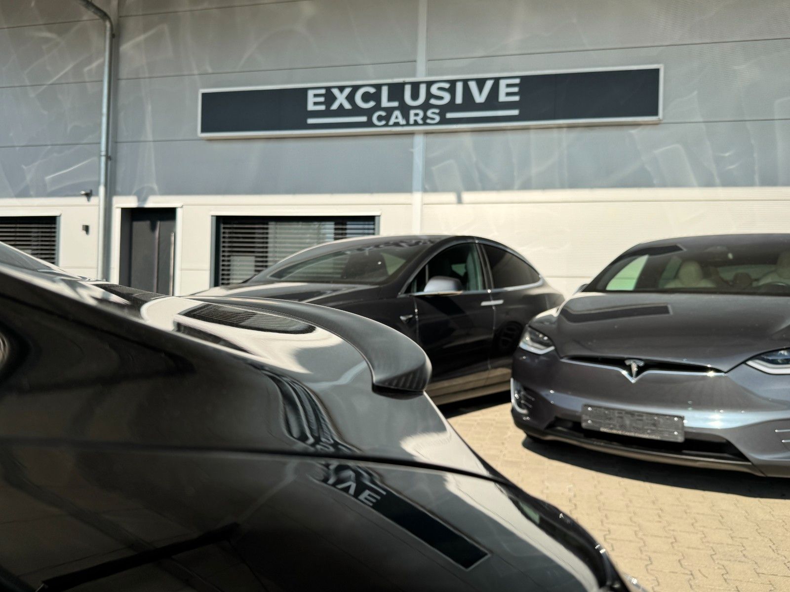 Air filter + HEPA (high-efficiency particulate absorbing) Autopilot Hardware 3.0 Premium Sound Tesla Red four piston Brembo brake calipers Ludicrous Speed Acceleration Performance Package PUR Dash Pad Carbon Fiber Decor Premium Interior Lighting Heated seats for every passenger, heated steering wheel, wiper blade defrosters and washer nozzle heaters LED Tagfahrlicht teilw. Funktion Black PUR Performance Stitching Lower Trim w/ Black IP Glass Roof Solid Black Suspension Update Black Ultra-Suede Upper Trim Headliner Carbon Fiber Spoiler Performance Motor app Bedienung u. ein Schlüssel