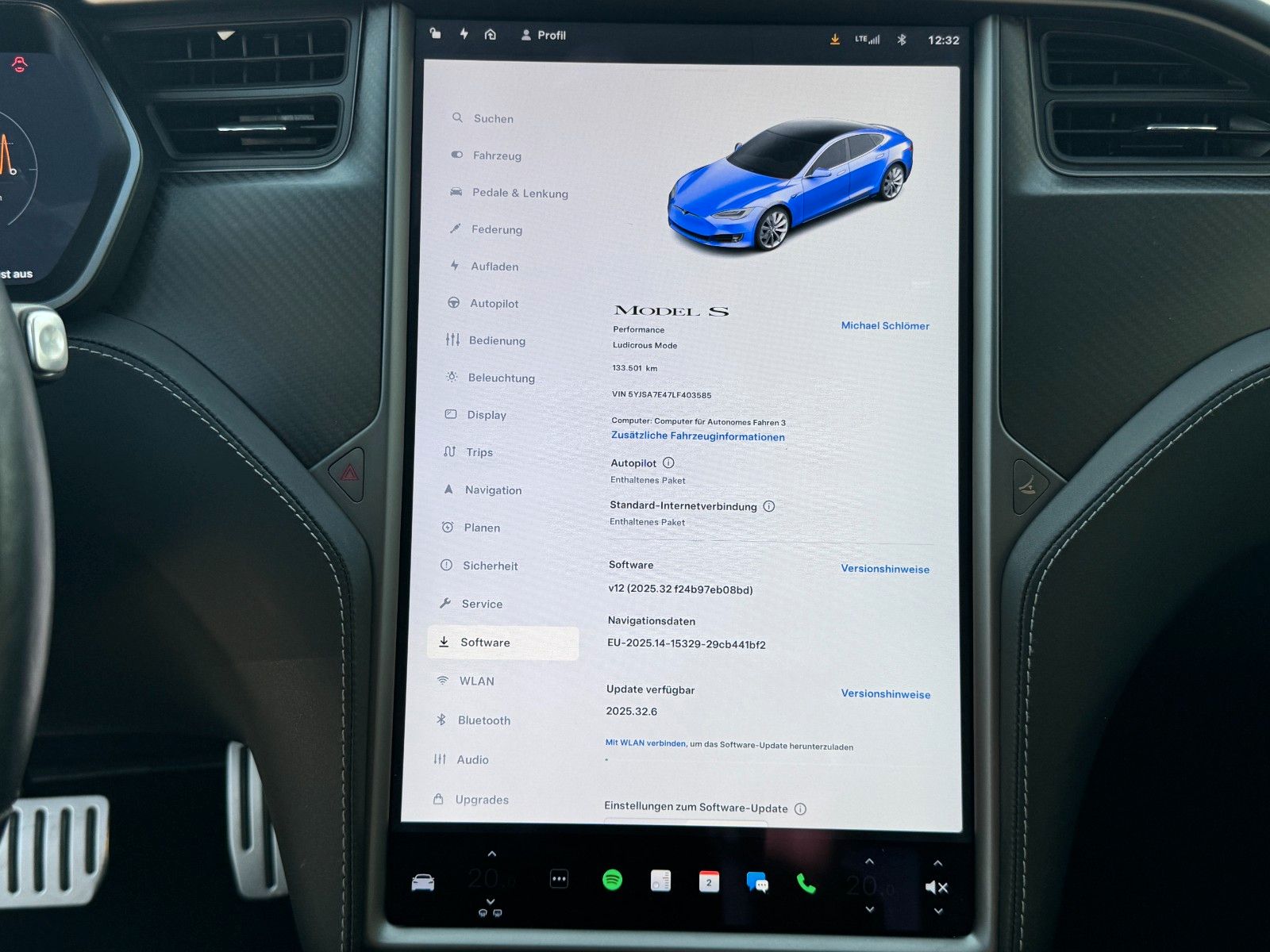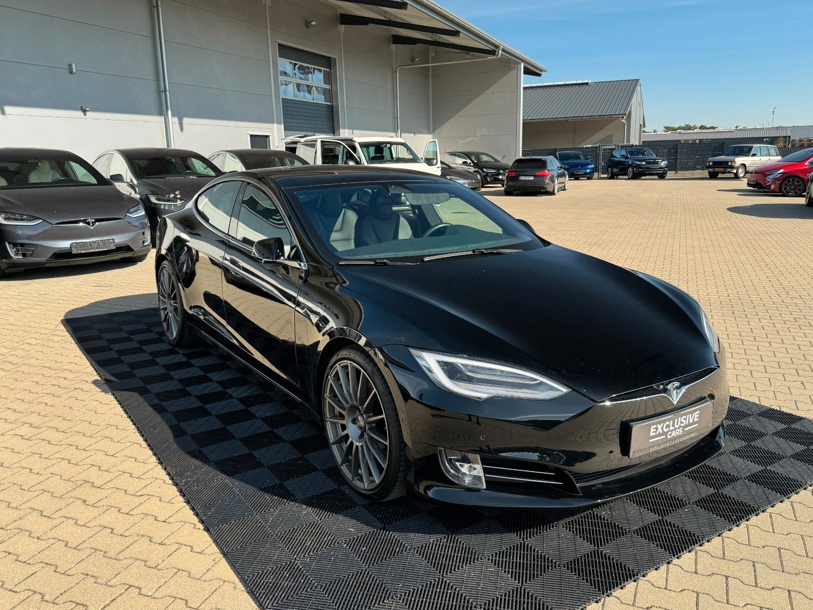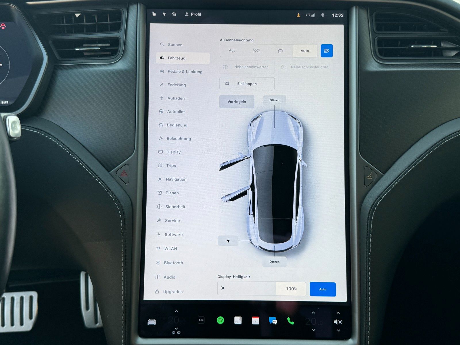Air filter + HEPA (high-efficiency particulate absorbing) Autopilot Hardware 3.0 Premium Sound Tesla Red four piston Brembo brake calipers Ludicrous Speed Acceleration Performance Package PUR Dash Pad Carbon Fiber Decor Premium Interior Lighting Heated seats for every passenger, heated steering wheel, wiper blade defrosters and washer nozzle heaters LED Tagfahrlicht teilw. Funktion Black PUR Performance Stitching Lower Trim w/ Black IP Glass Roof Solid Black Suspension Update Black Ultra-Suede Upper Trim Headliner Carbon Fiber Spoiler Performance Motor app Bedienung u. ein Schlüssel