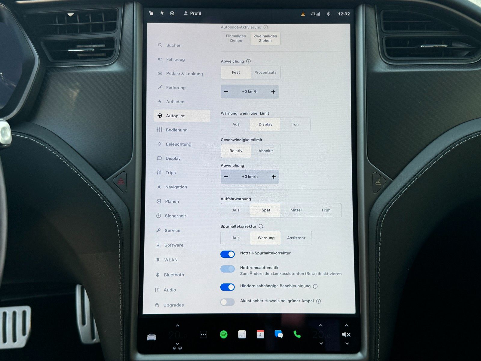 Autopilot-Paket enthalten Abstandsregeltempomat (Adaptive Cruise Control) Lenkassistent (Beta) Geschwindigkeitslimit-Erkennung (wahlweise relativ/absolut) Abweichungseinstellung (+/- km/h) Warnung bei Geschwindigkeitsüberschreitung (Display oder Ton) Aufmerksamkeits- und Auffahrwarnung (einstellbar: früh/mittel/spät) Spurhalteassistent mit Warn- und Eingriffs-Funktion Notfall-Spurhaltekorrektur Notbremsassistent Hindernisabhängige Beschleunigung Ampelerkennung mit Anhalte- und Anfahrunterstützung (Anzeige bei grüner Ampel)