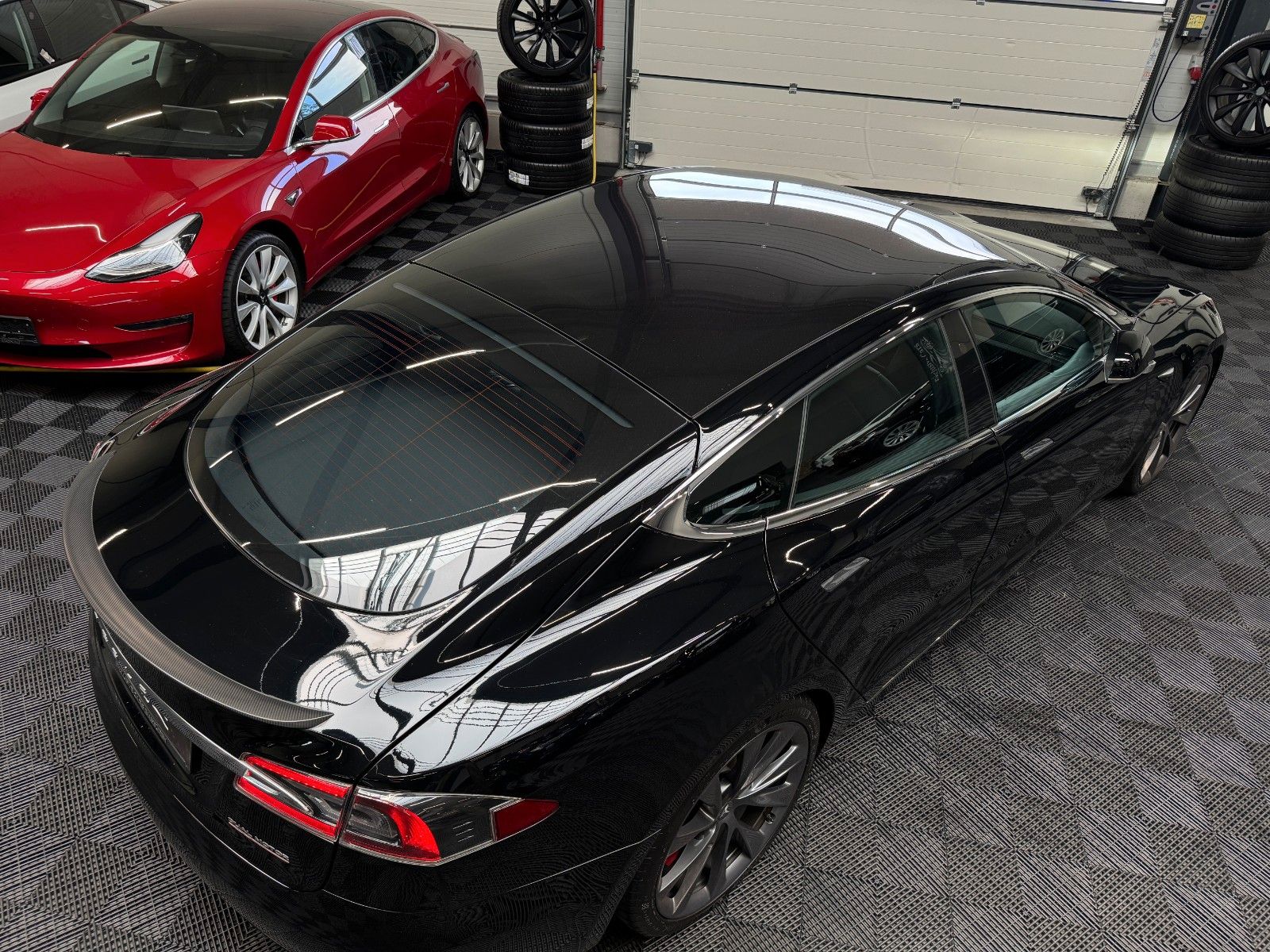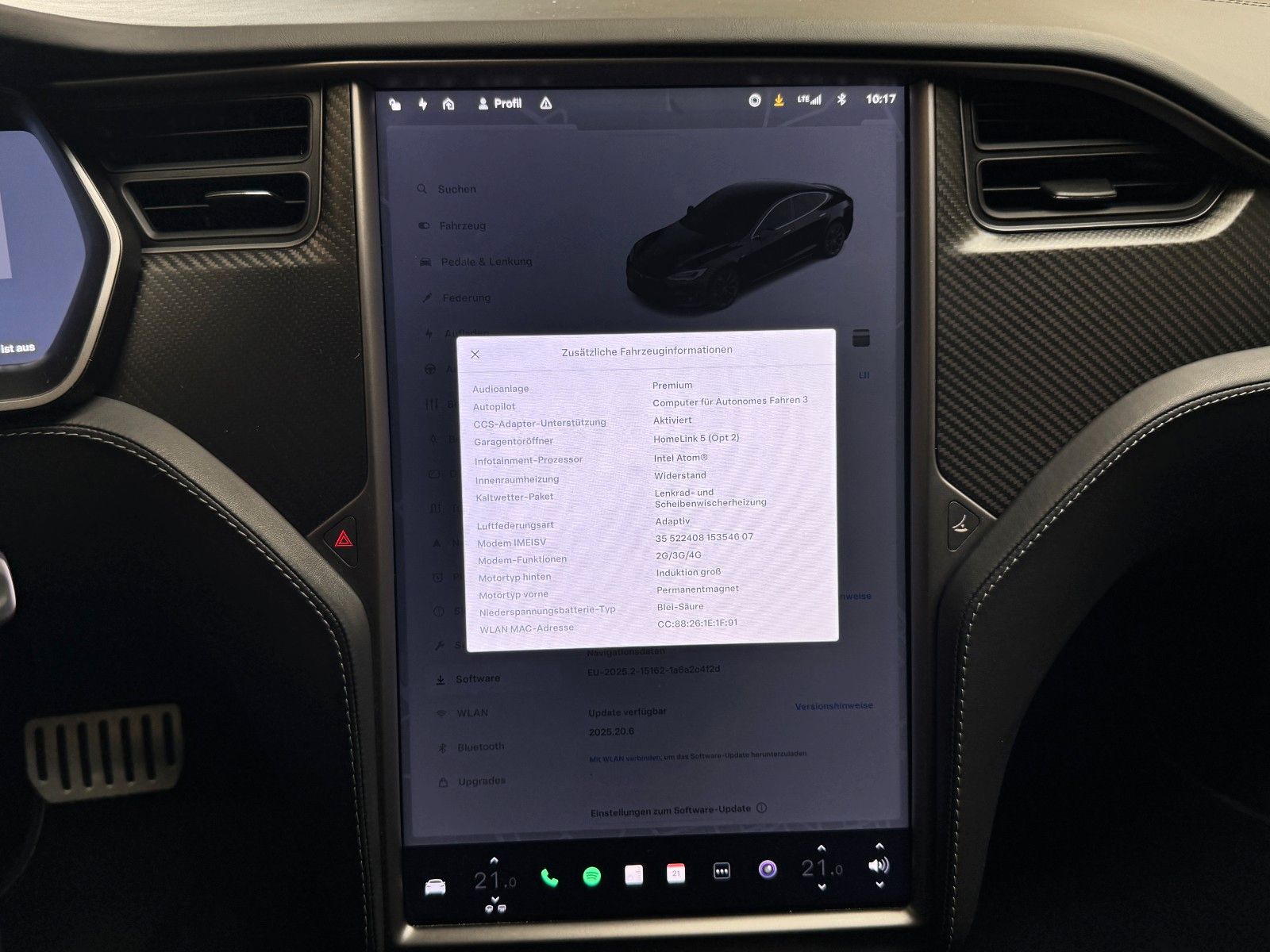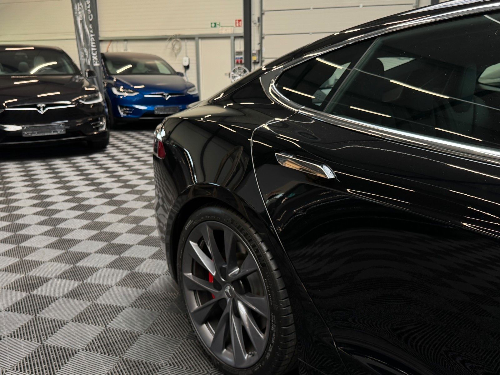 air filter + HEPA (high-efficiency particulate absorbing) air filter Autopilot Hardware 3.0 Full Self Drive Upgrade aktiviert CCS Upgrade aktiviert MCU2 Intel Atom Upgrade aktiviert Premium Sound Heated seats for every passenger, heated steering wheel, wiper blade defrosters and washer nozzle heaters Active Hood Front Brake Brembo Black Performance Drive Unit Carbon Fiber Spoiler Carbon Fiber Decor LED Tagfahrlicht teilw. Funktion Premium Interior Lighting Black PUR Designed Premium Seats Solid Black 21" Sonic Carbon Twin Turbine Wheels Glass Roof Suspension Update app Bedienung u. ein Schlüssel