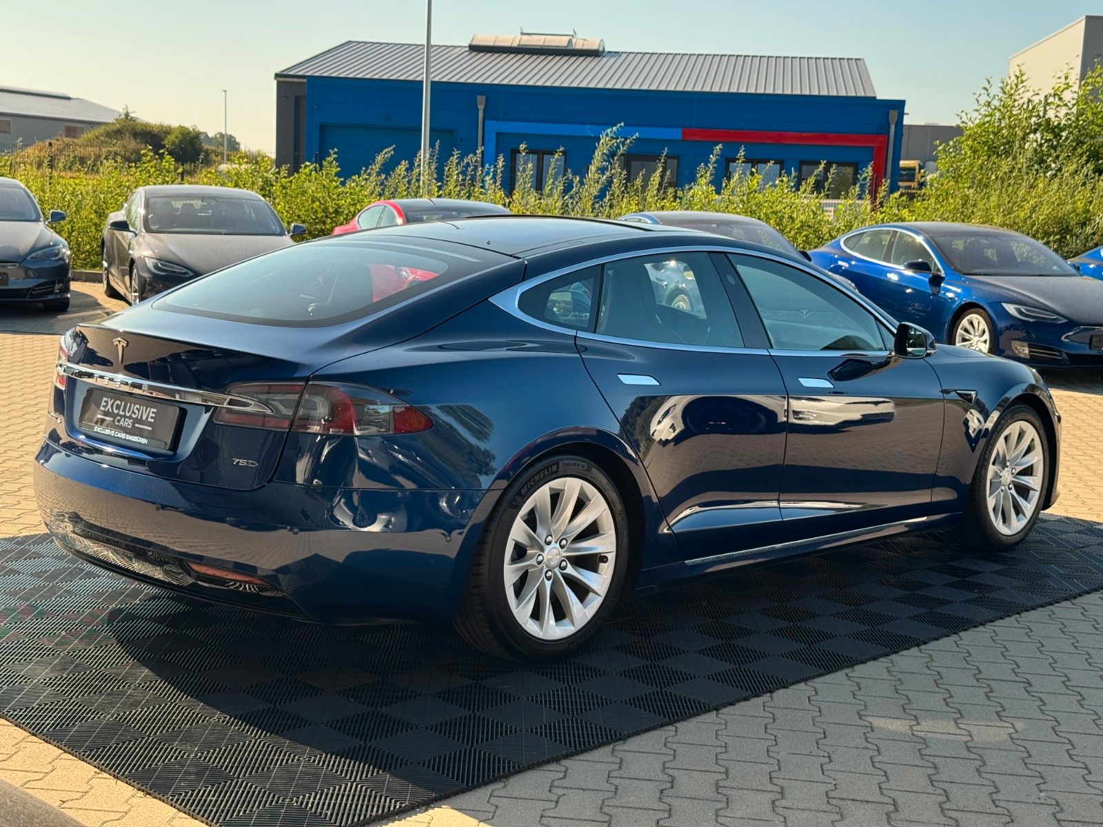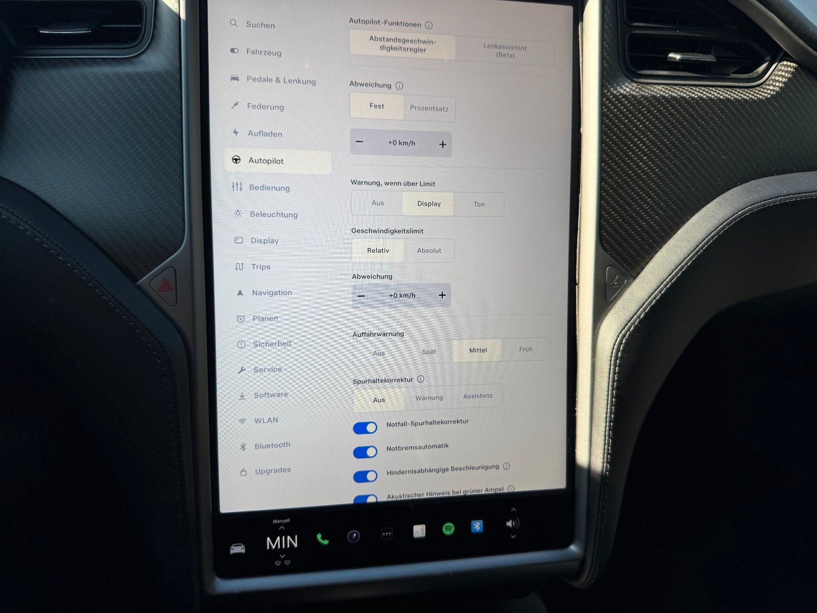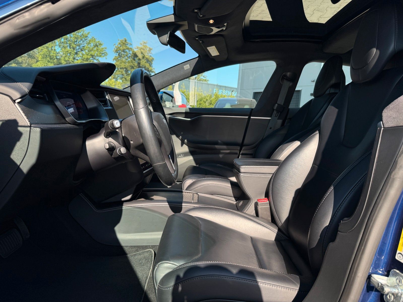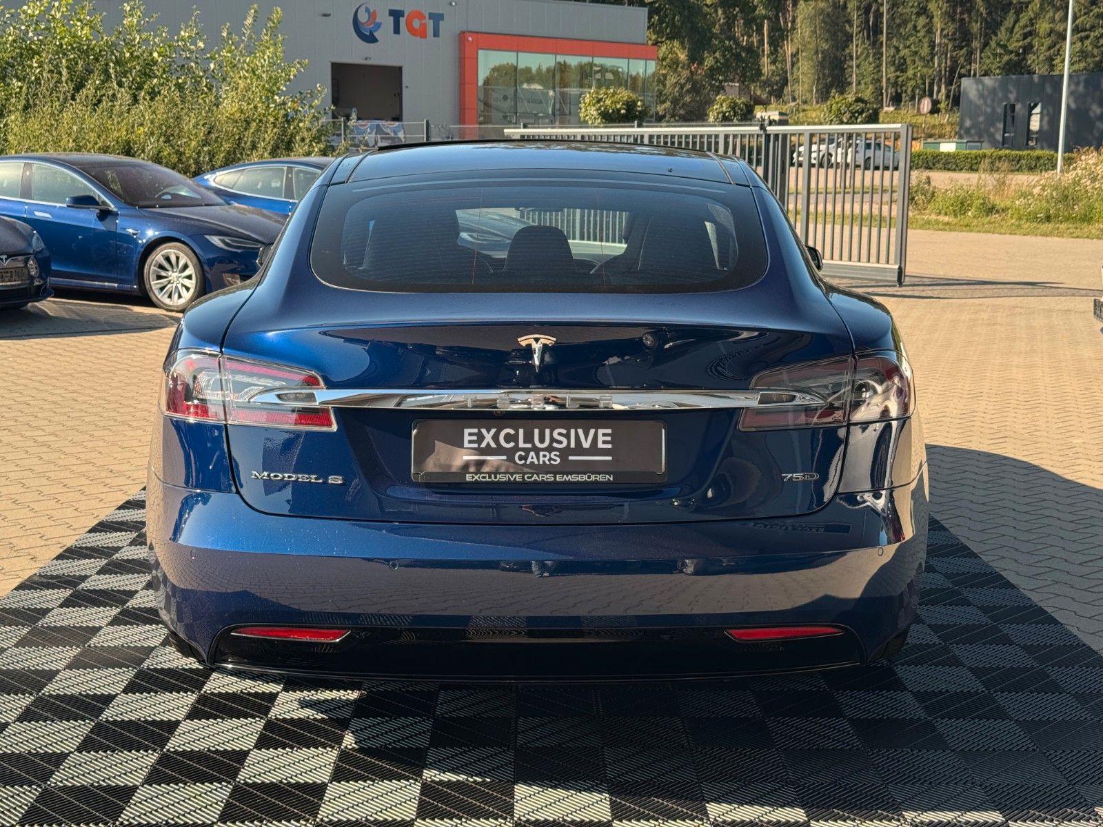 Tesla Model S 75D Dual Drive Deep Blue Metallic Carbon Fiber Decor Diamond Black Metallic Paint Glass Roof Sunroof MCU 2 Intel Atom Upgrade Black PUR Premium Lower Trim w/ Black IP Autopilot Hardware 2.5 + PASCAL ECU + Autopilot Hardware 3.0 Mando Black Brake Calipers air filter + HEPA (high-efficiency particulate absorbing) air filter Premium Interior Lighting Black Ultra-Suede Upper Trim Headliner LED Tagfahrlicht teilw. Funktion app Bedienung u. ein Schlüssel Smart Air Suspension Heated seats for every passenger, heated steering wheel, wiper blade defrosters and washer nozzle heaters 19" Silver Wheels