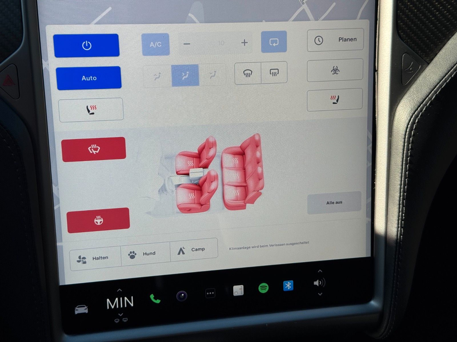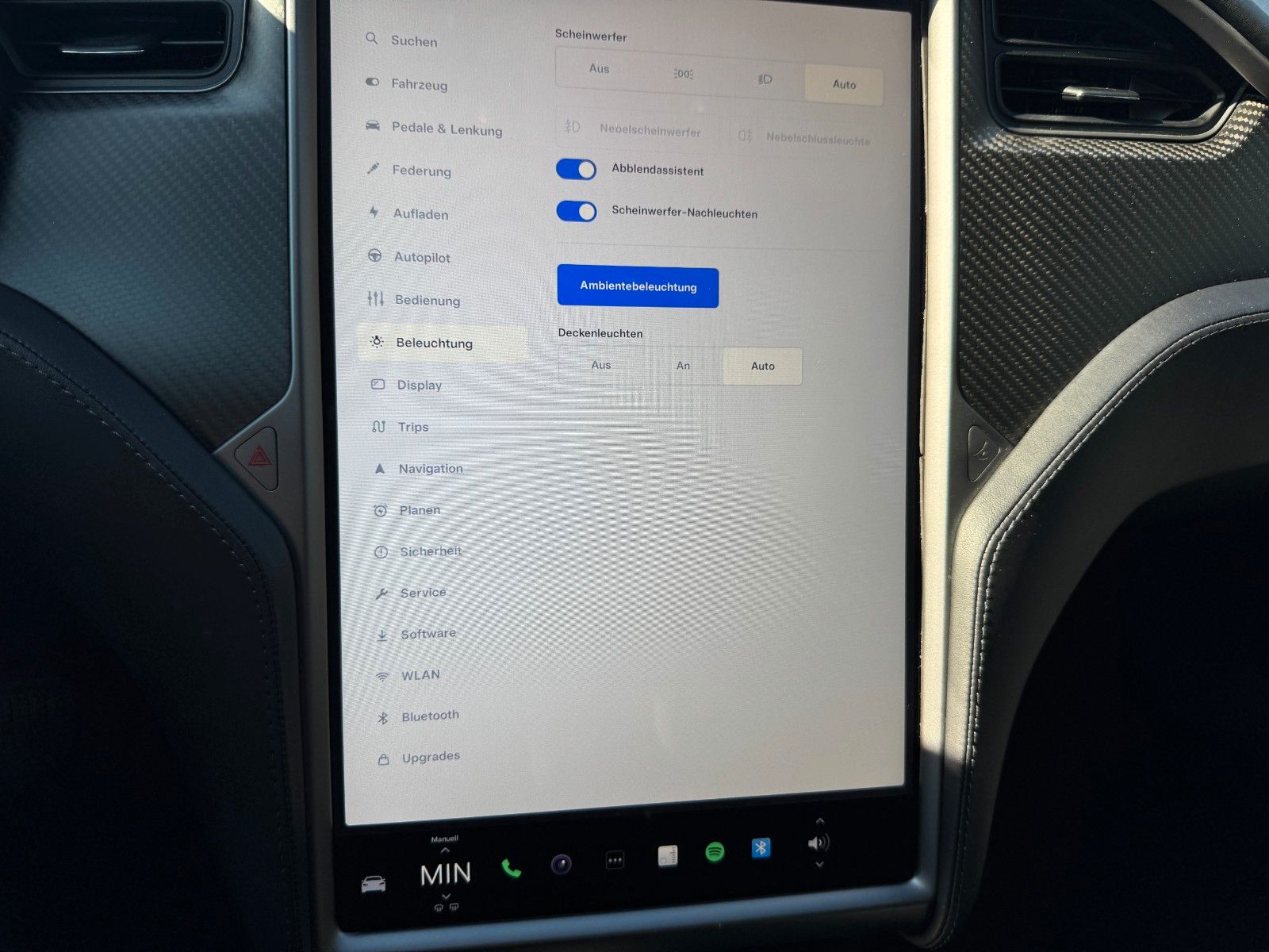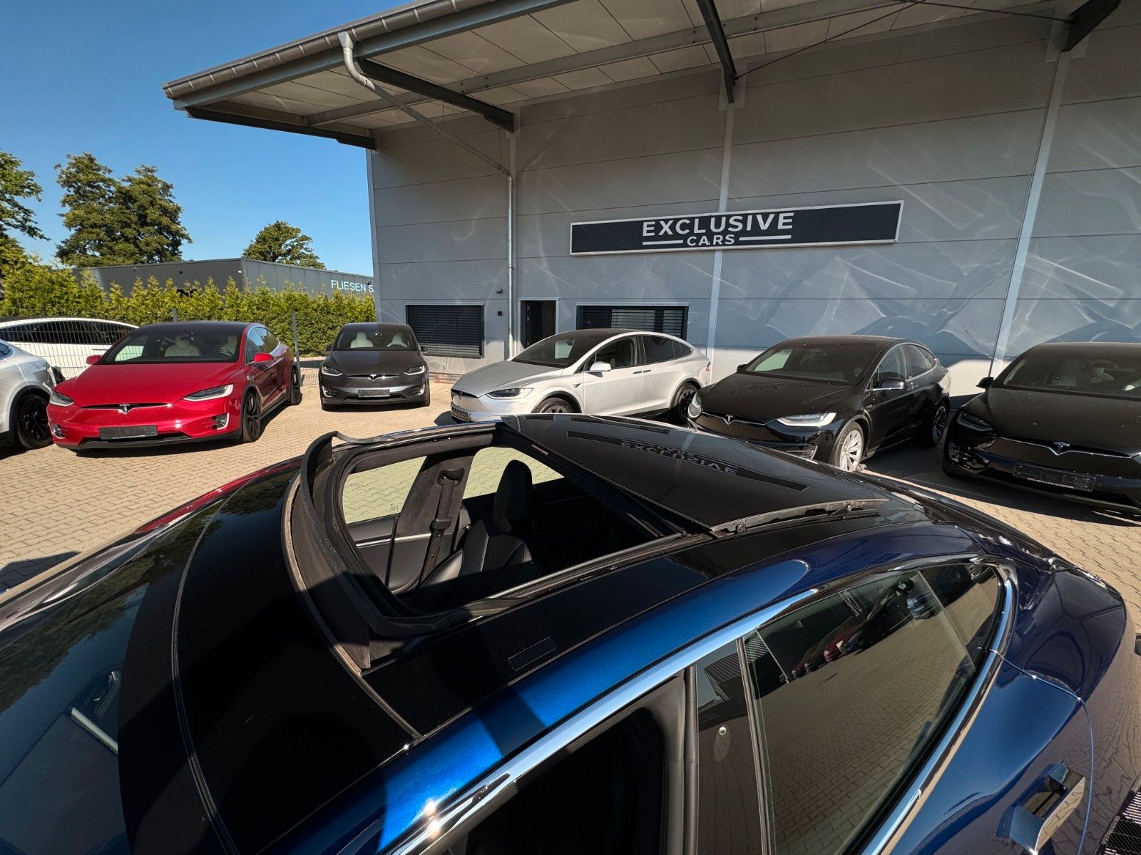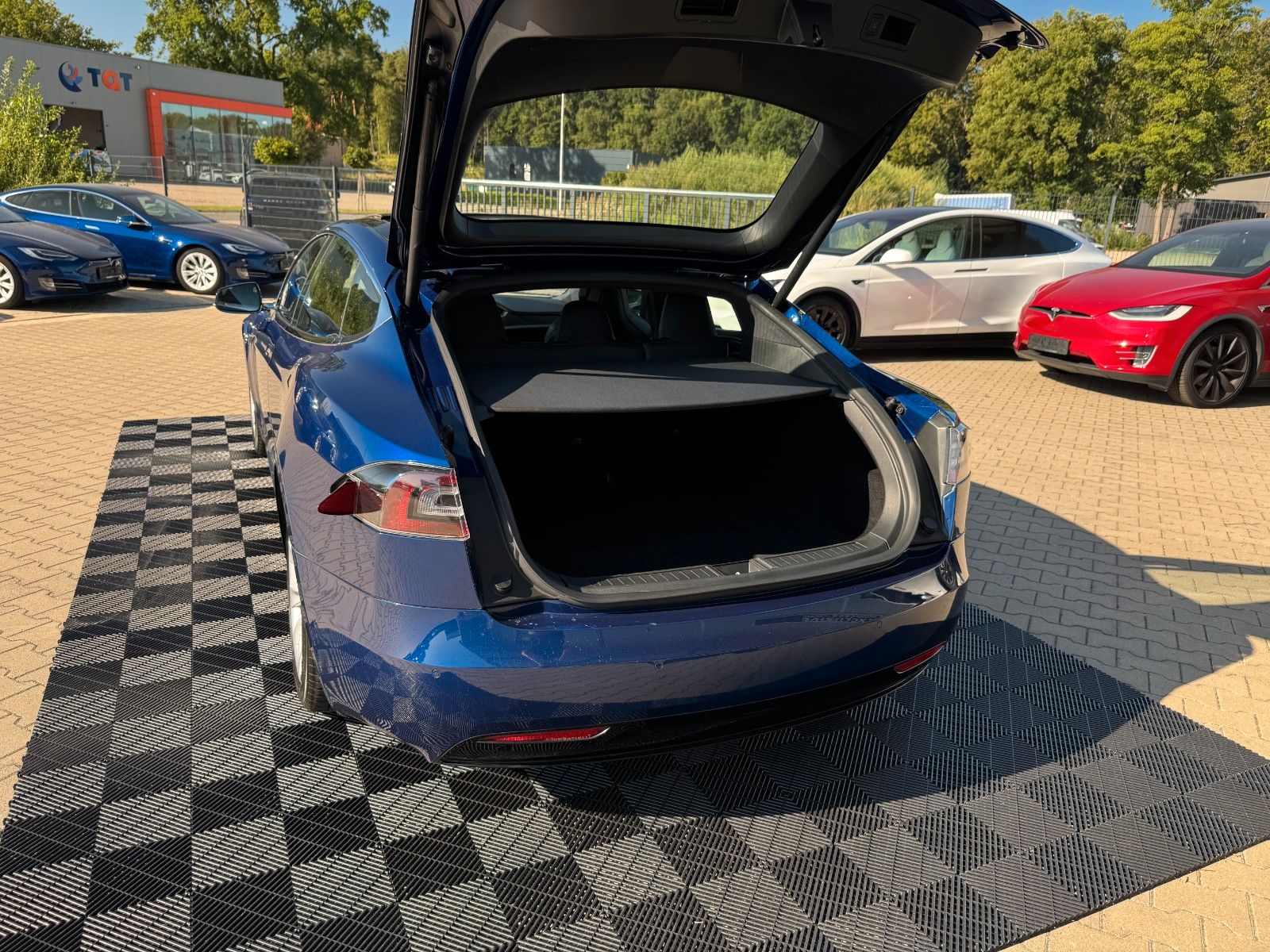 Tesla Model S 75D Dual Drive Deep Blue Metallic Carbon Fiber Decor Diamond Black Metallic Paint Glass Roof Sunroof MCU 2 Intel Atom Upgrade Black PUR Premium Lower Trim w/ Black IP Autopilot Hardware 2.5 + PASCAL ECU + Autopilot Hardware 3.0 Mando Black Brake Calipers air filter + HEPA (high-efficiency particulate absorbing) air filter Premium Interior Lighting Black Ultra-Suede Upper Trim Headliner LED Tagfahrlicht teilw. Funktion app Bedienung u. ein Schlüssel Smart Air Suspension Heated seats for every passenger, heated steering wheel, wiper blade defrosters and washer nozzle heaters 19" Silver Wheels