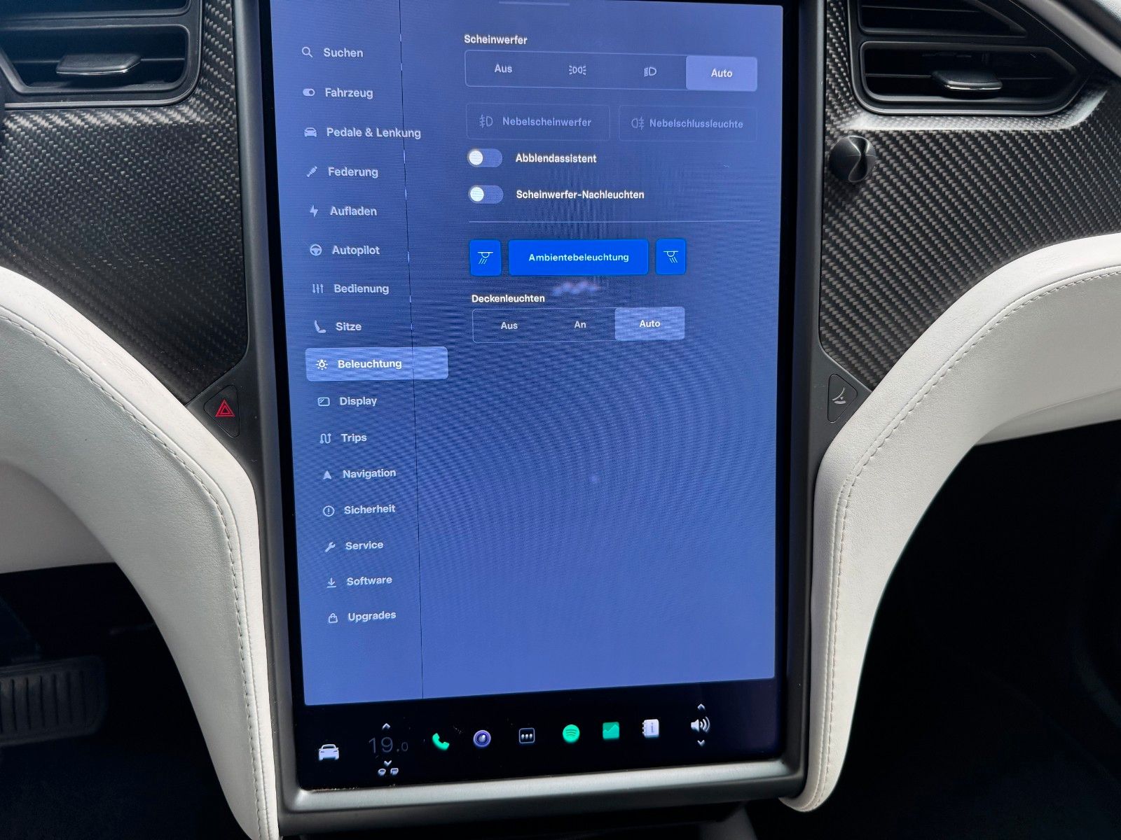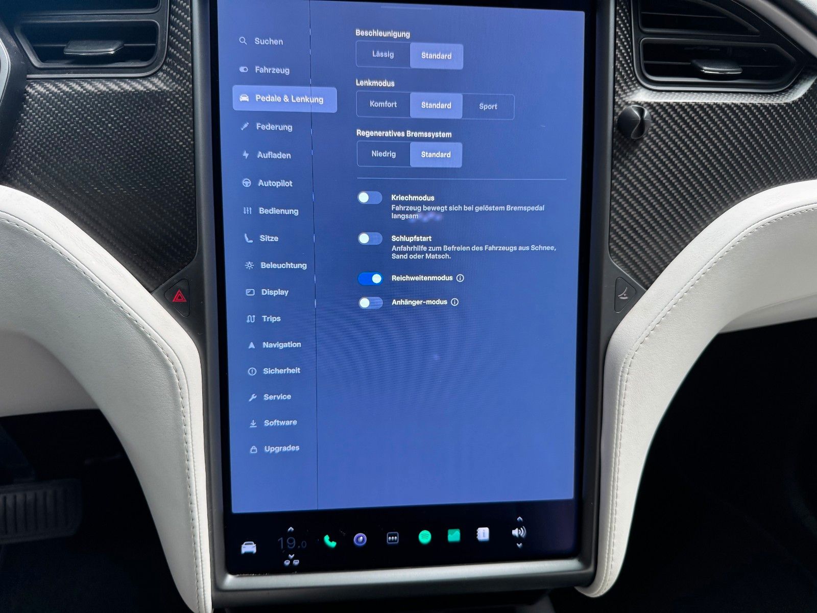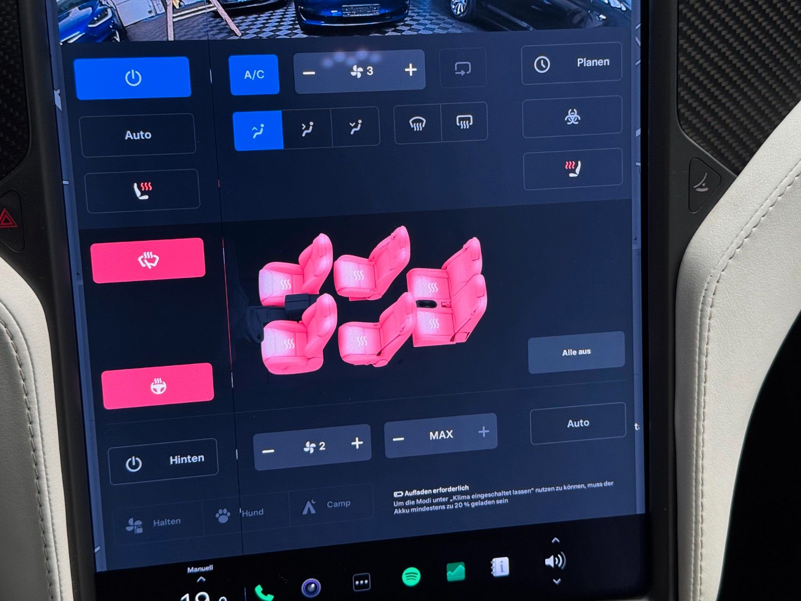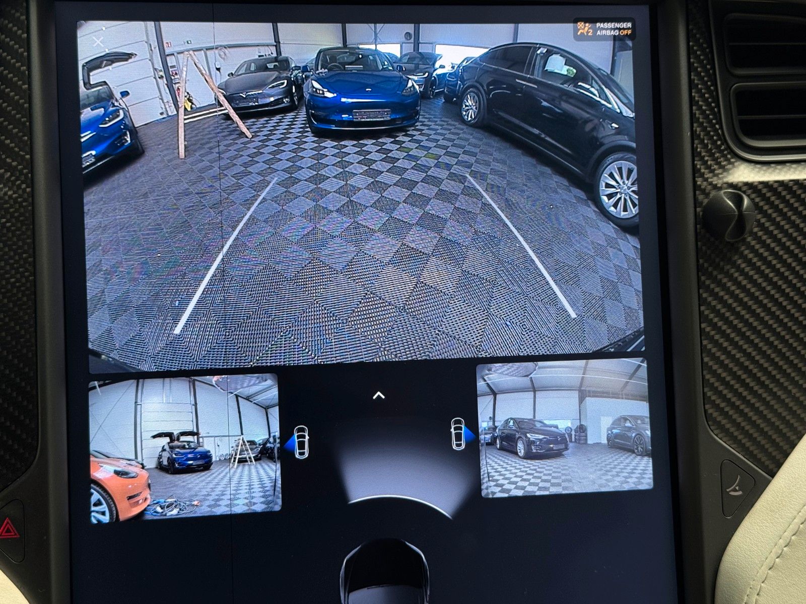 air filter + HEPA (high-efficiency particulate absorbing) air filter Full Self Drive Autopilot aktiviert MCU2 Upgrade auf Intel Atom aktiviert CCS Upgrade aktiviert Autopilot Hardware 2.5 + PASCAL ECU Carbon Fiber Decor Premium Sound Mando Black Brake Calipers Black PUR Premium Lower Trim w/ Black IP Heated seats for every passenger, heated steering wheel, wiper blade defrosters and washer nozzle heaters Premium Interior Lighting Solid Black White Pur Comfort PUR Seat Six Seat Interior Smart Air Suspension app Bedienung u. ein Schlüssel Tow Package Black Ultra-Suede Upper Trim Headliner 20" Silver Wheels