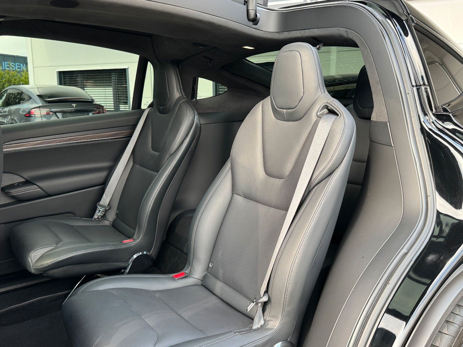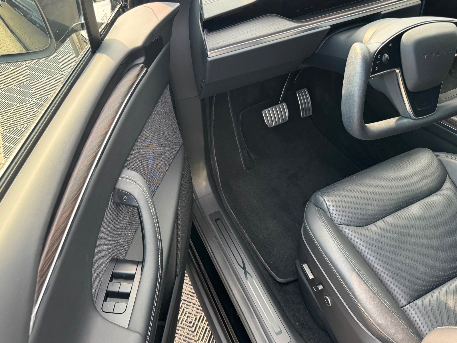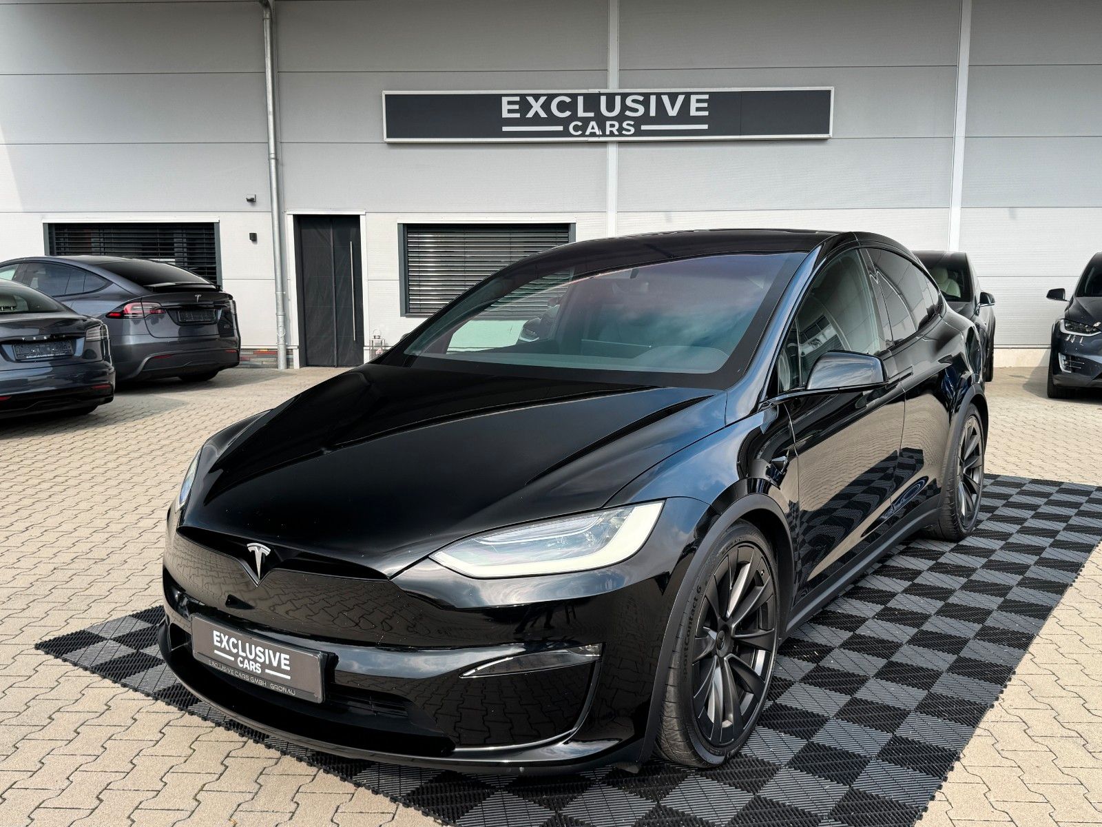 Tesla Model X Maximale Reichweite Palladium Dual Motor Solid Black Black Colorway Ebony Wood Decor 22" Turbine 6 Seater Computer für autonomes Fahren 4 Enhanced Autopilot AMD Ryzen Prozessor Yoke Steering Wheel Suspension Update Palladium Tow Package