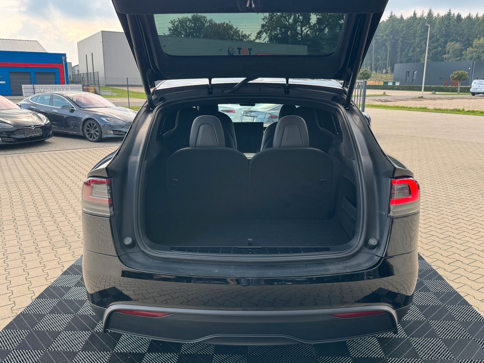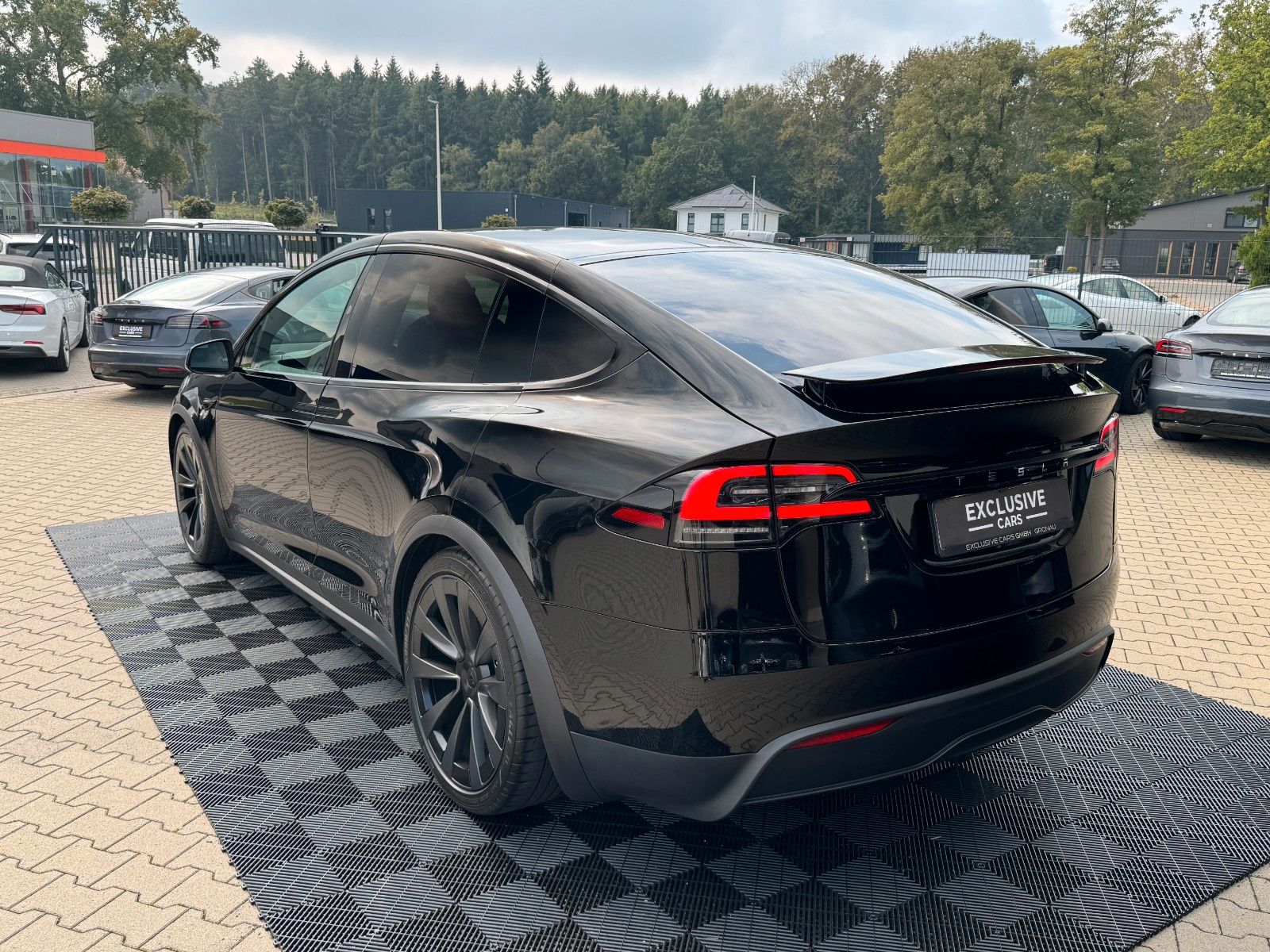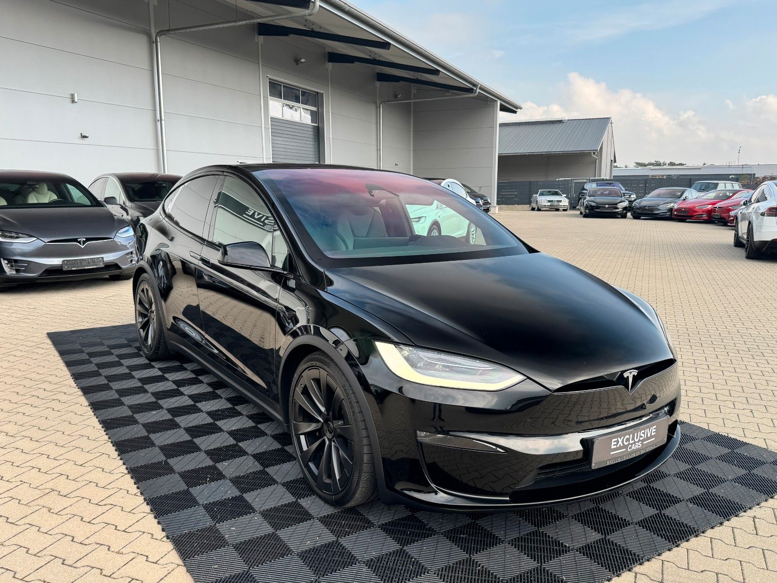 Tesla Model X Maximale Reichweite Palladium Dual Motor Solid Black Black Colorway Ebony Wood Decor 22" Turbine 6 Seater Computer für autonomes Fahren 4 Enhanced Autopilot AMD Ryzen Prozessor Yoke Steering Wheel Suspension Update Palladium Tow Package